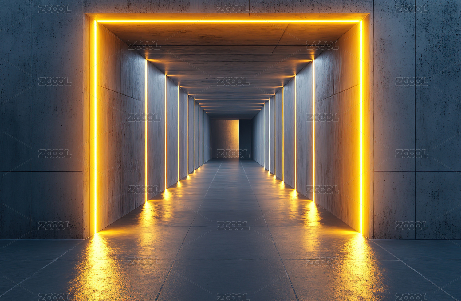 霓虹灯框的混凝土走廊