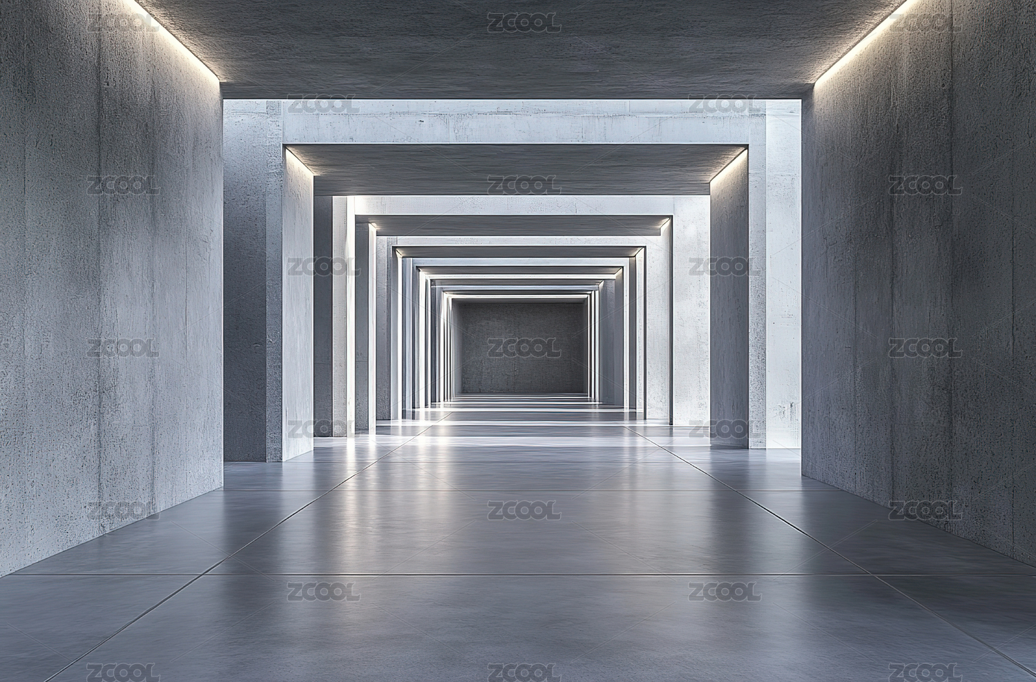 现代混凝土几何空间走廊