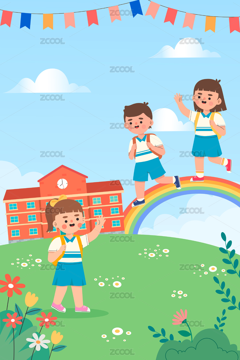 插画,活动,夏天,风景,花,春天,自然,开学,开学季,学校