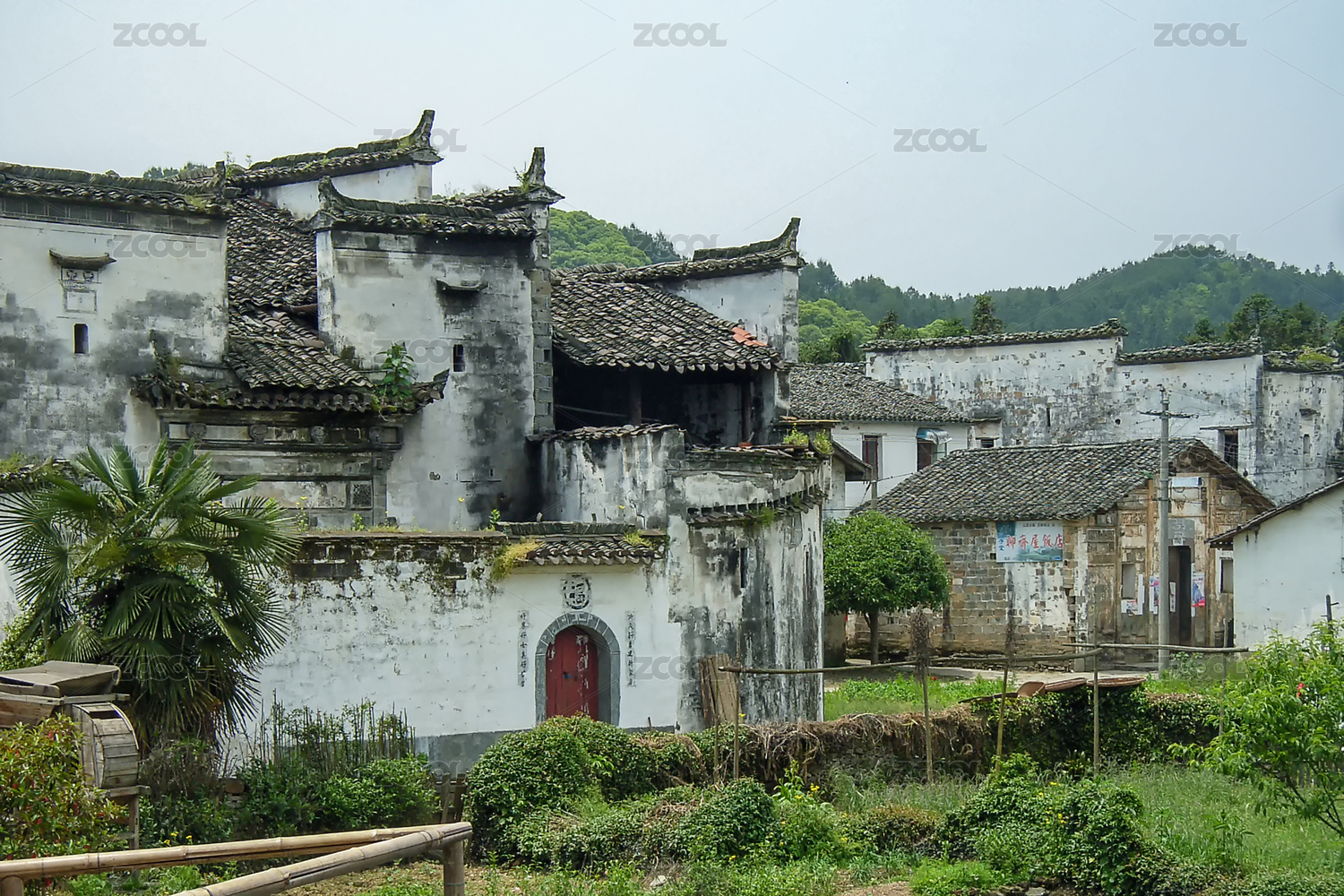 安徽省黄山市黟县西递古村晨雾中的建筑结构