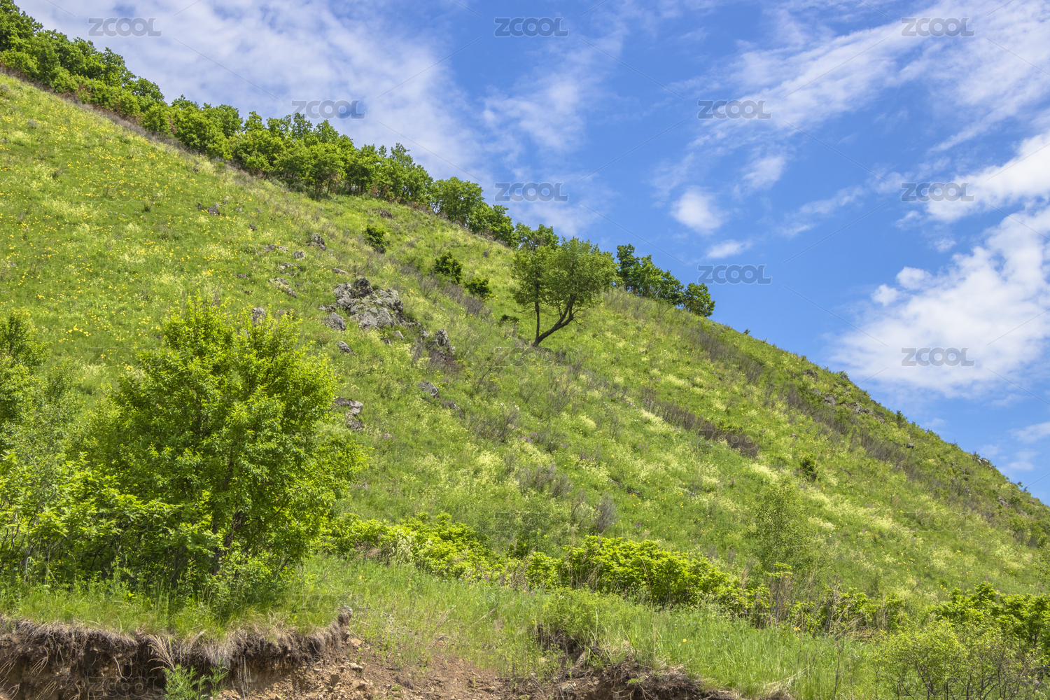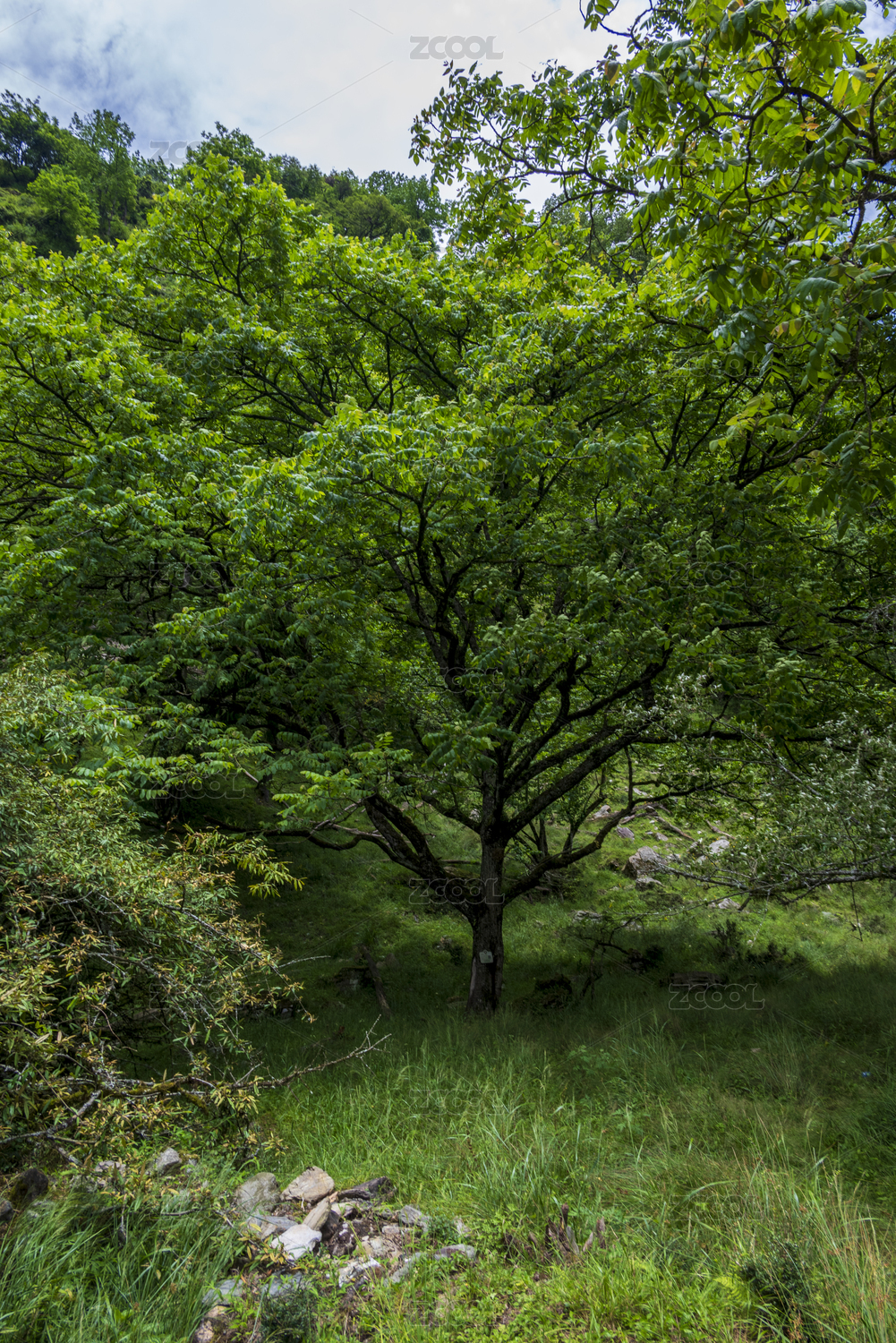 黄土高原干旱地带夏天宁静乡村高大的洋槐树