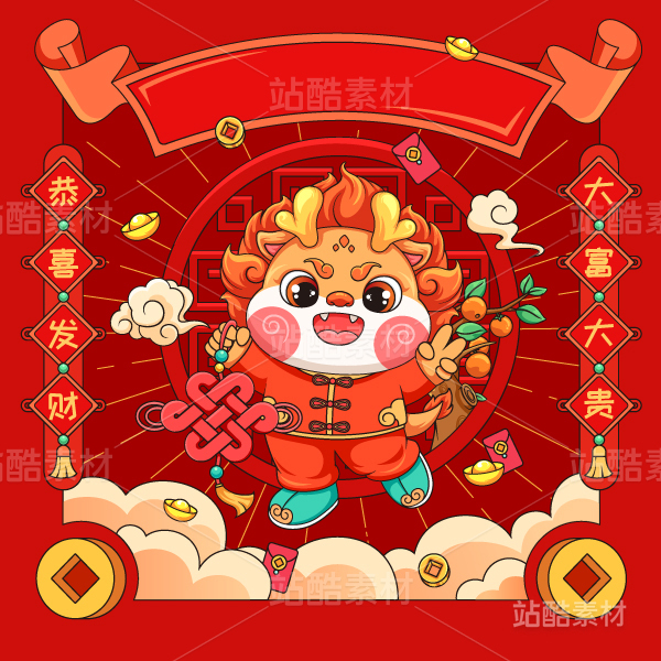 龙年,卡通,新年,春节,龙,年俗,传统节日,可爱,喜庆,红色