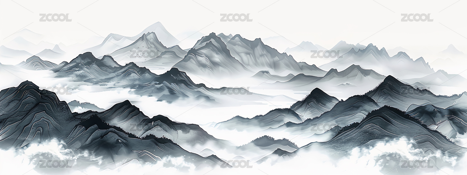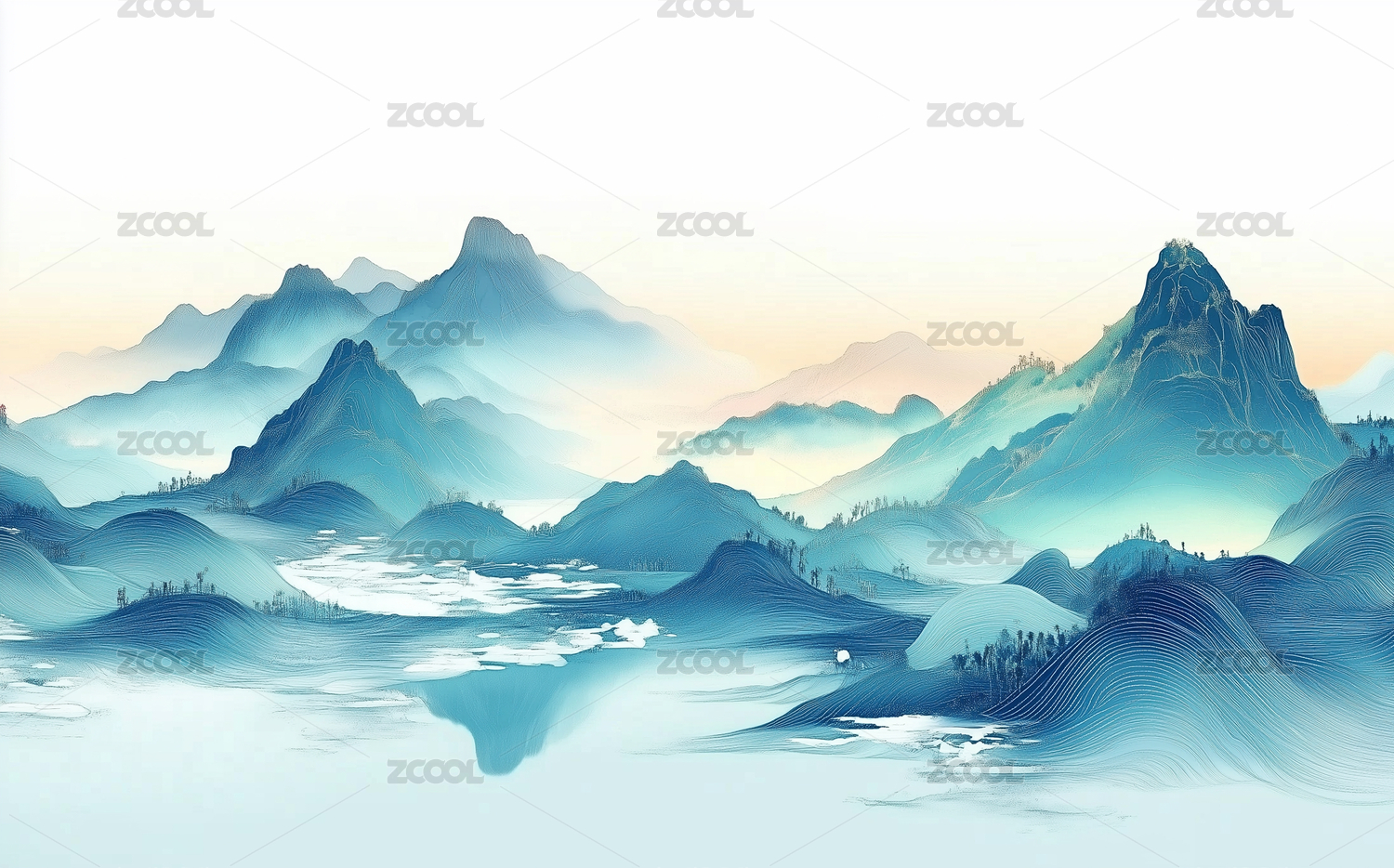 AI绘画,水墨画,国画,山峰,云海,湖,海