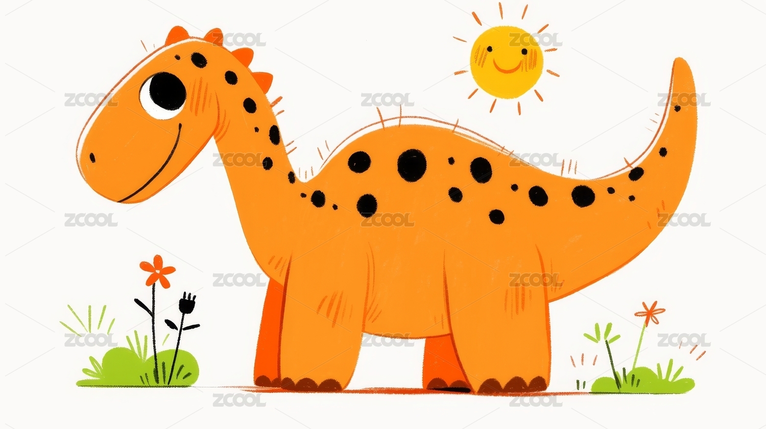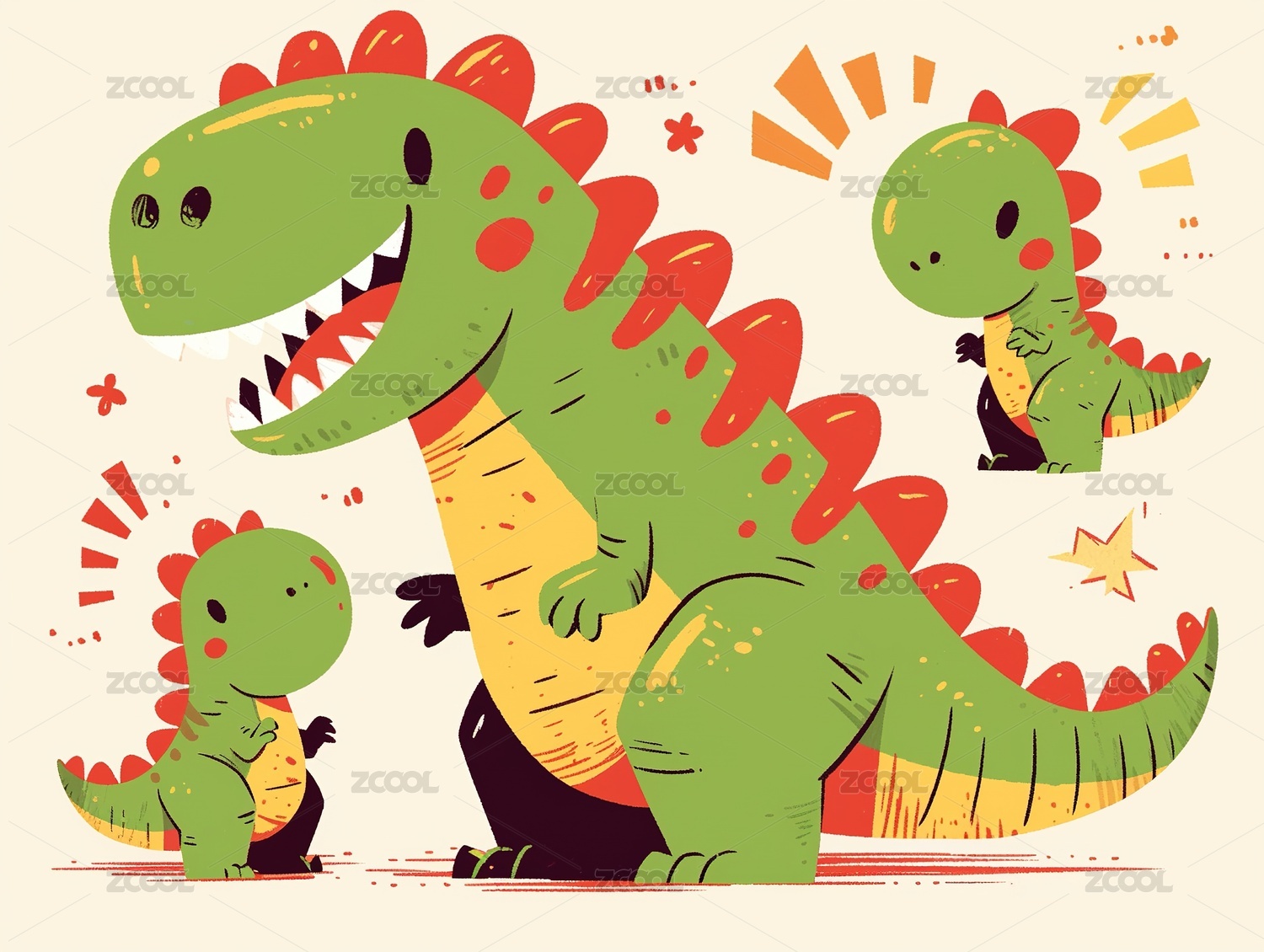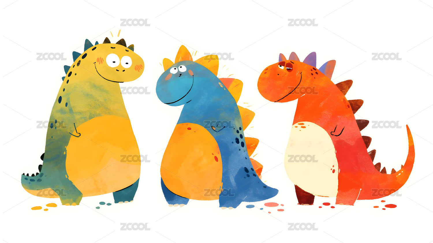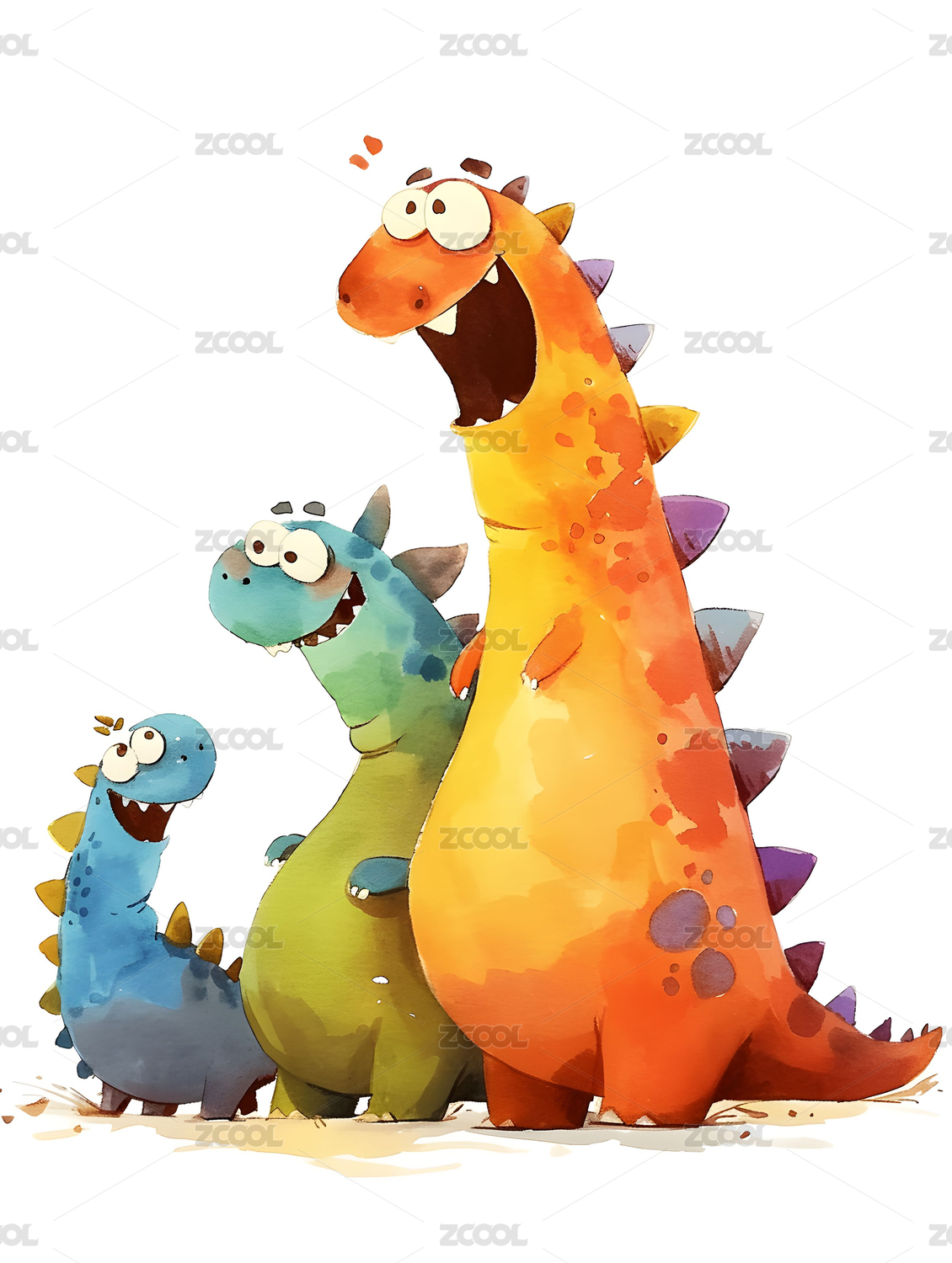 数码水彩幼儿风格恐龙图案装饰抽象图形海报