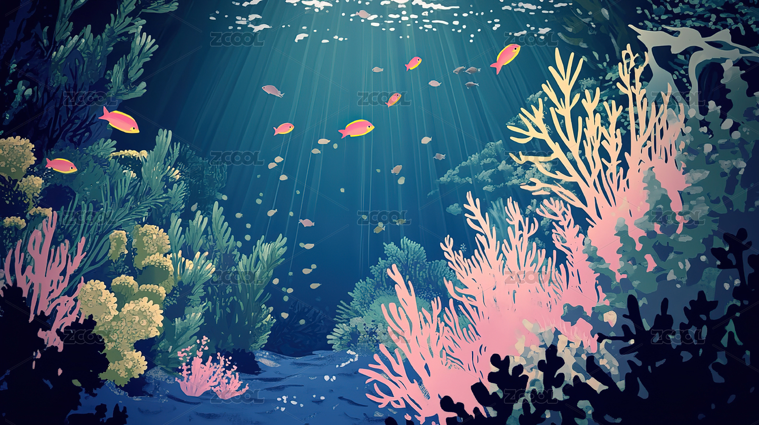 海底,彩色,扁平,插画,壁纸,背景,绘本,海底世界,海洋,珊瑚