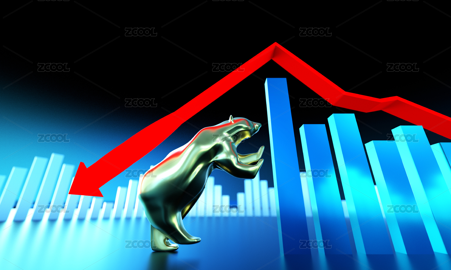 下降箭头与熊,经济衰落与破产