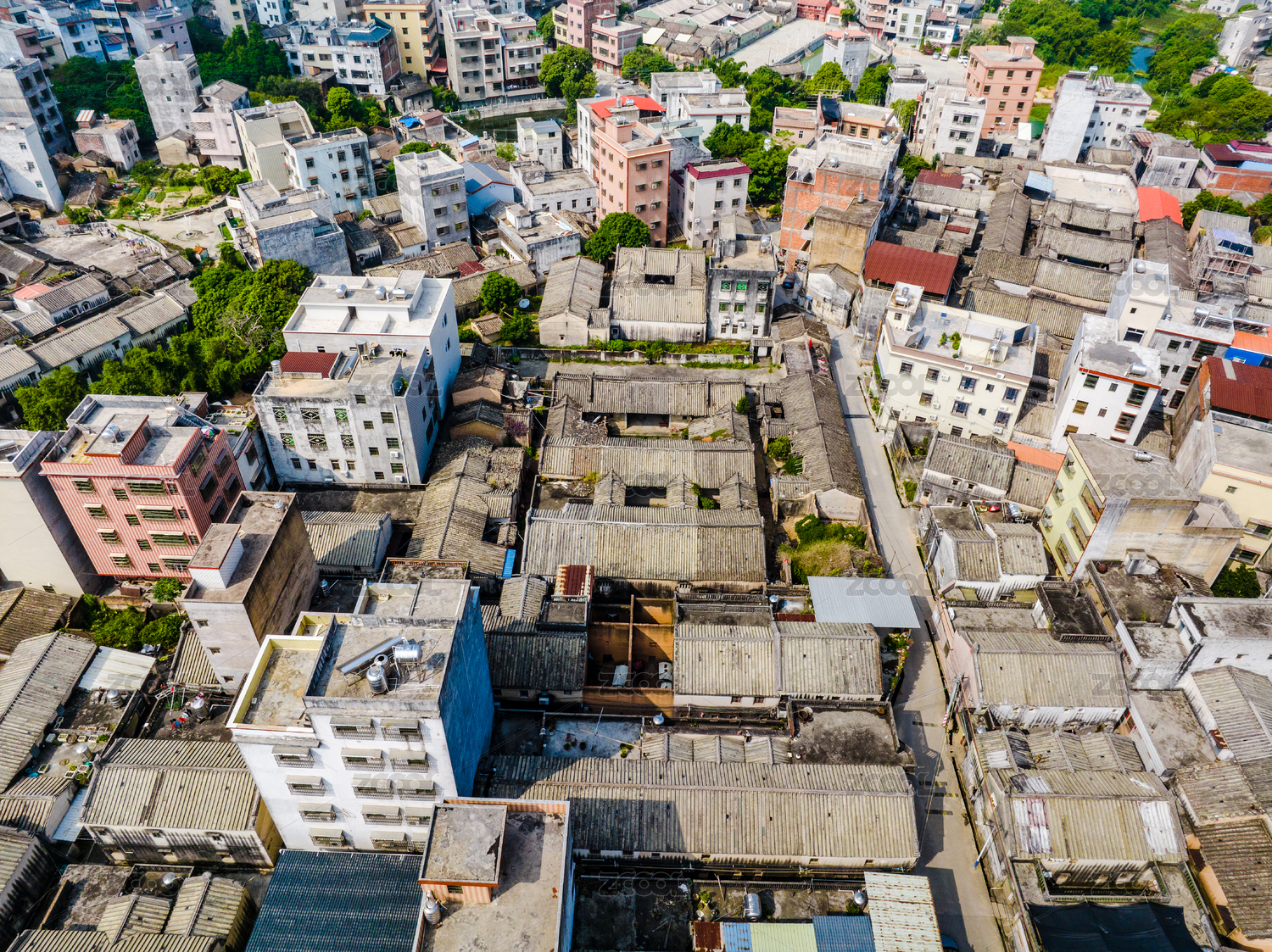 中国广东潮汕揭阳普宁德安里民居群航拍