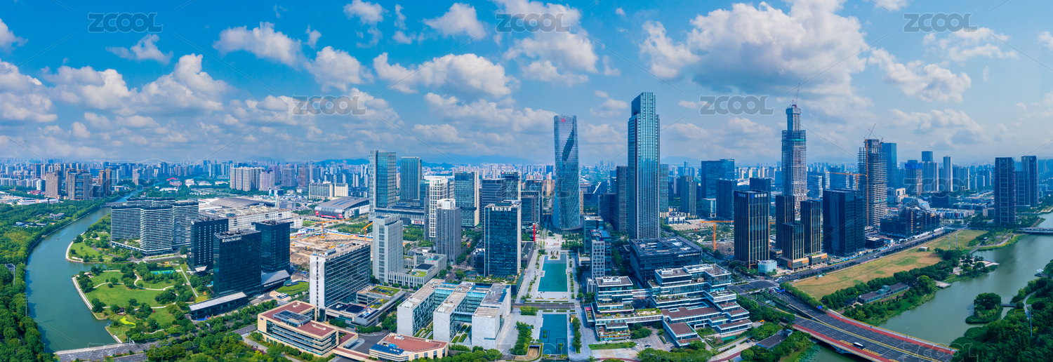 中国广东省广州琶洲金融商务区建筑群和城市天际线
