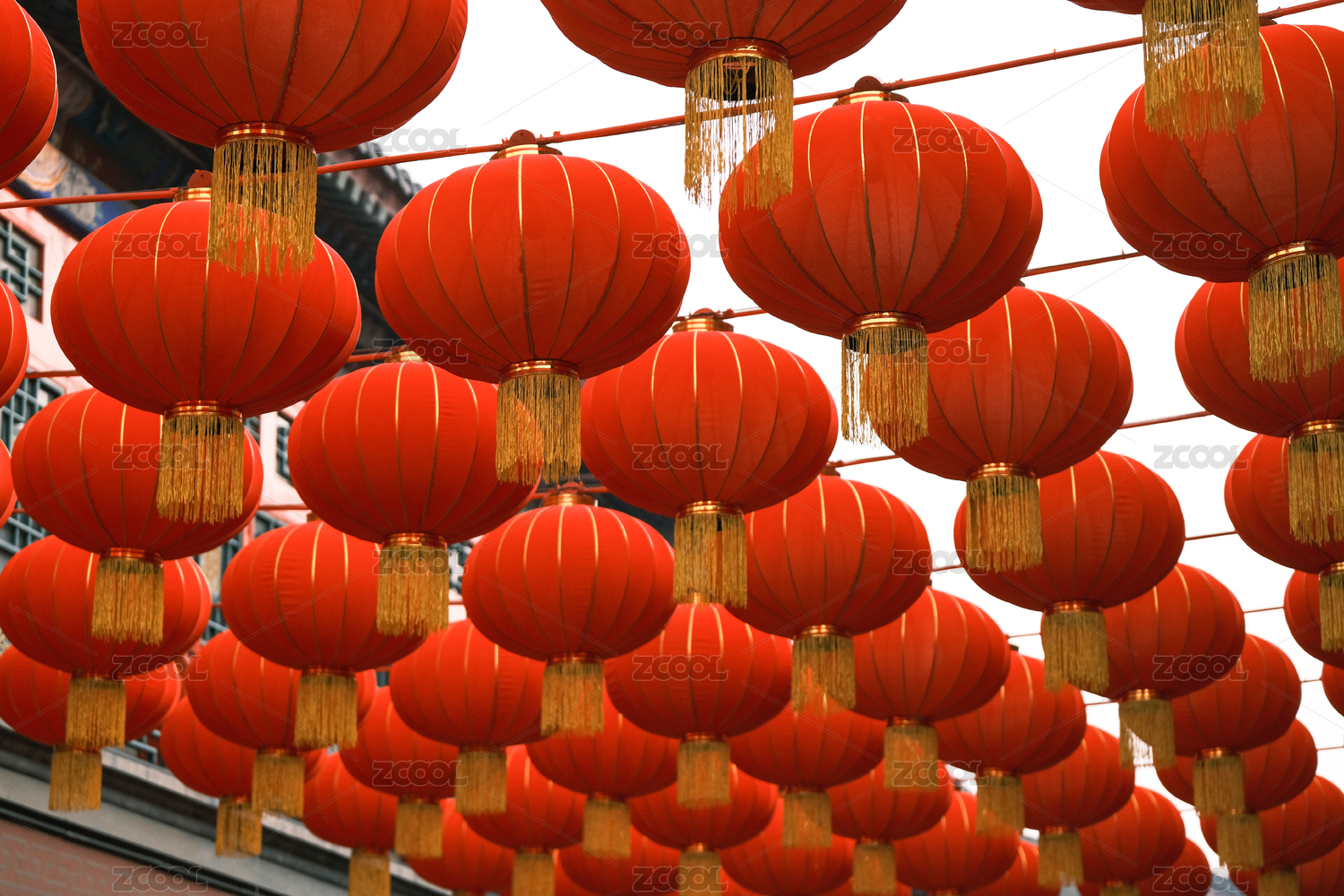 Many hanging red lantern.It usually used to celebrate when some festival is coming like Spring Festival , National Day and so on .
