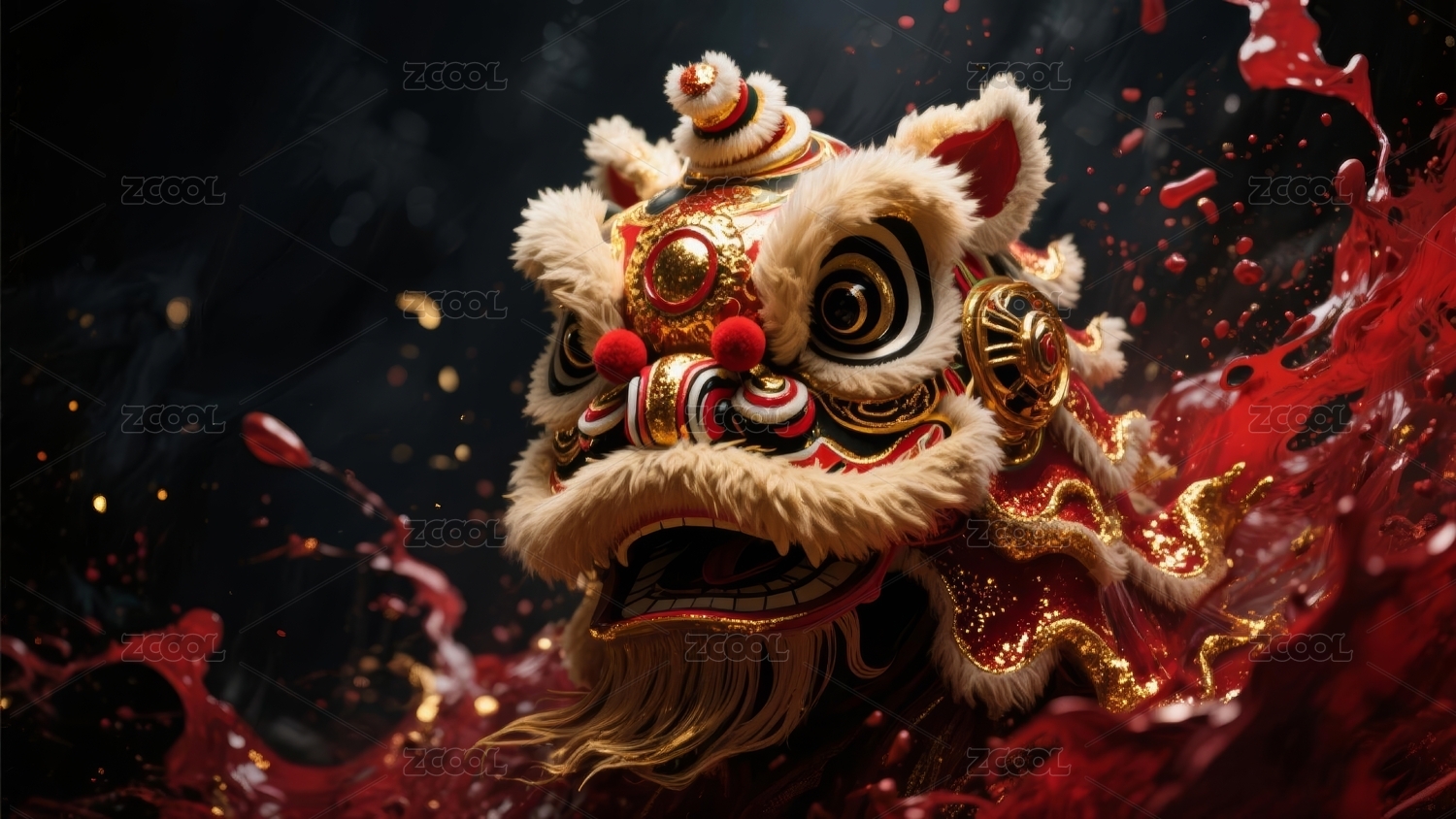 除夕,春节,神兽,水墨画,舞狮,新春,新年,过年