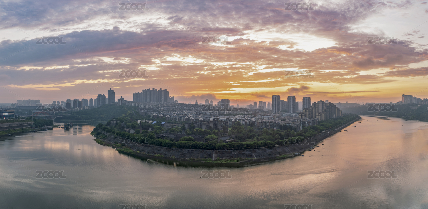 嘉陵江傍晚日落航拍