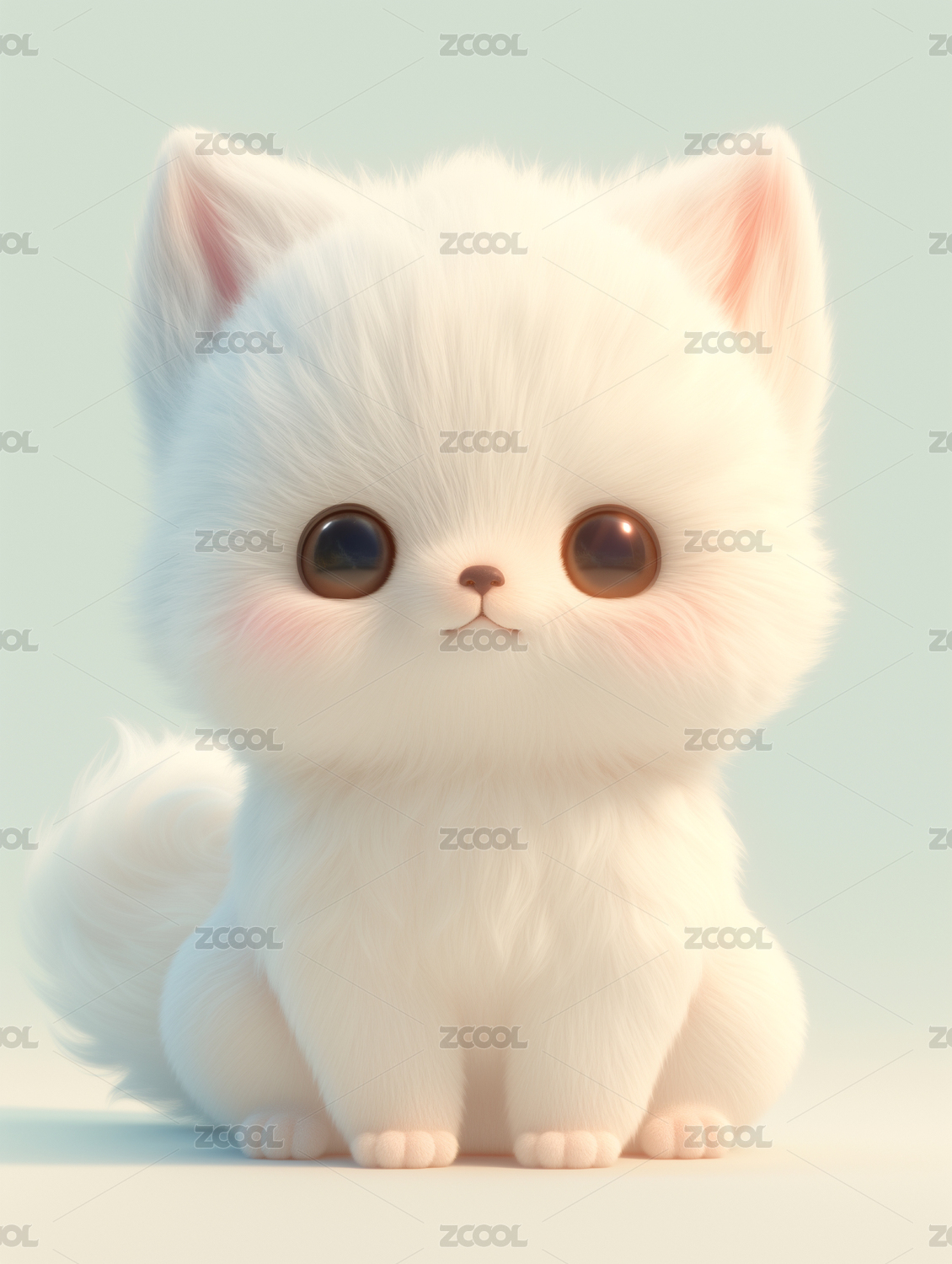 坐着的白色可爱小猫