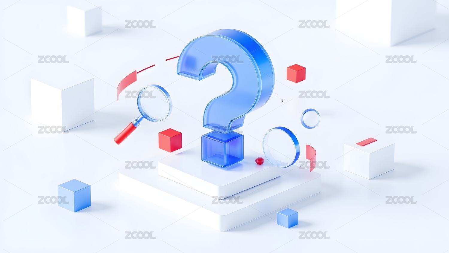 蓝色问号与放大镜组合