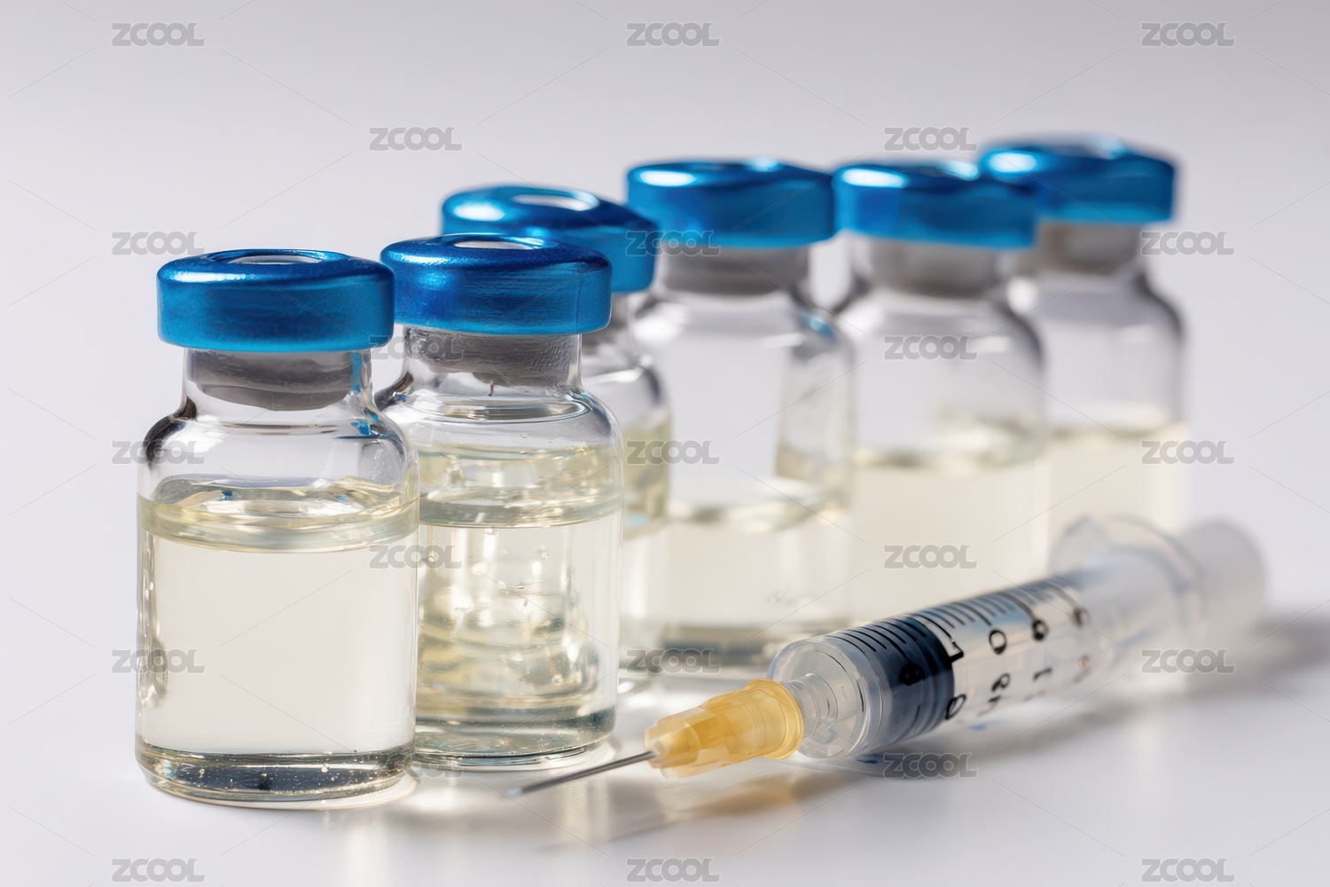 疫苗接种医疗器材注射器与疫苗瓶特写