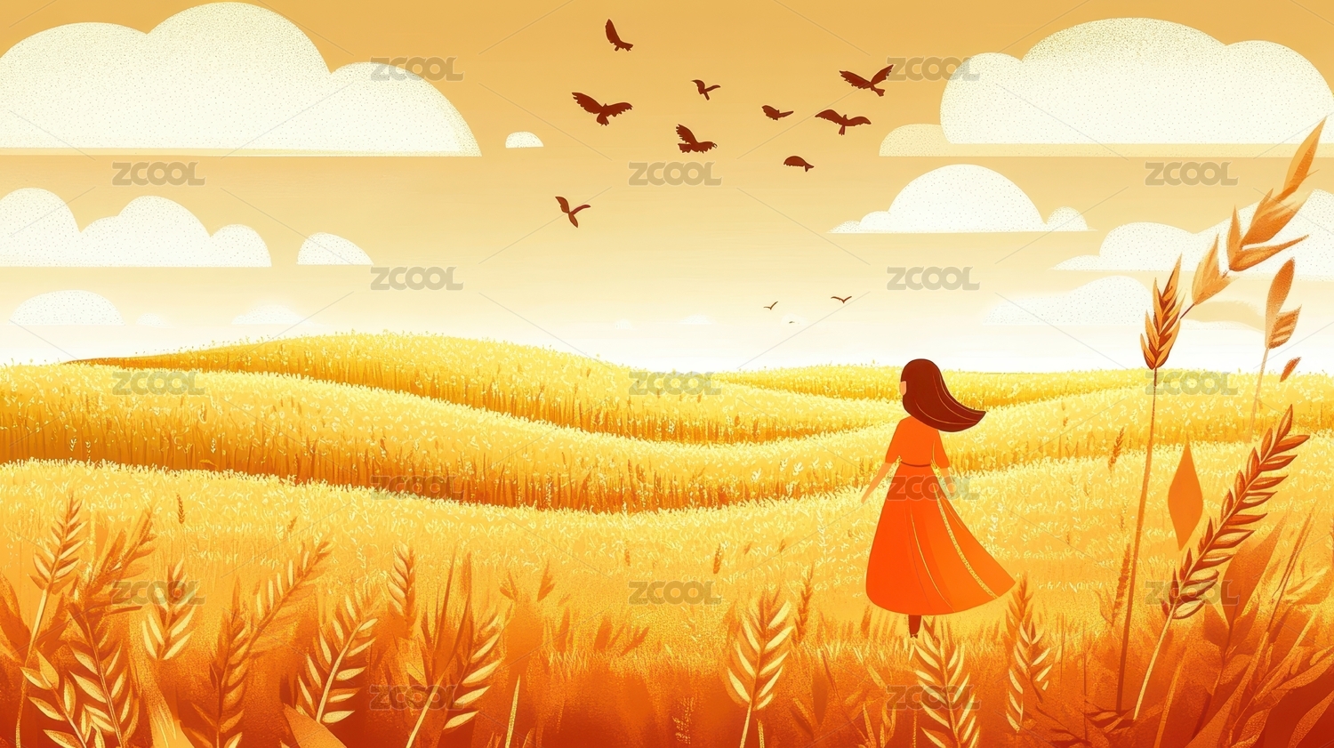 天空,野外,风光,风景,插画,唯美,梦幻,清新,治愈,秋天