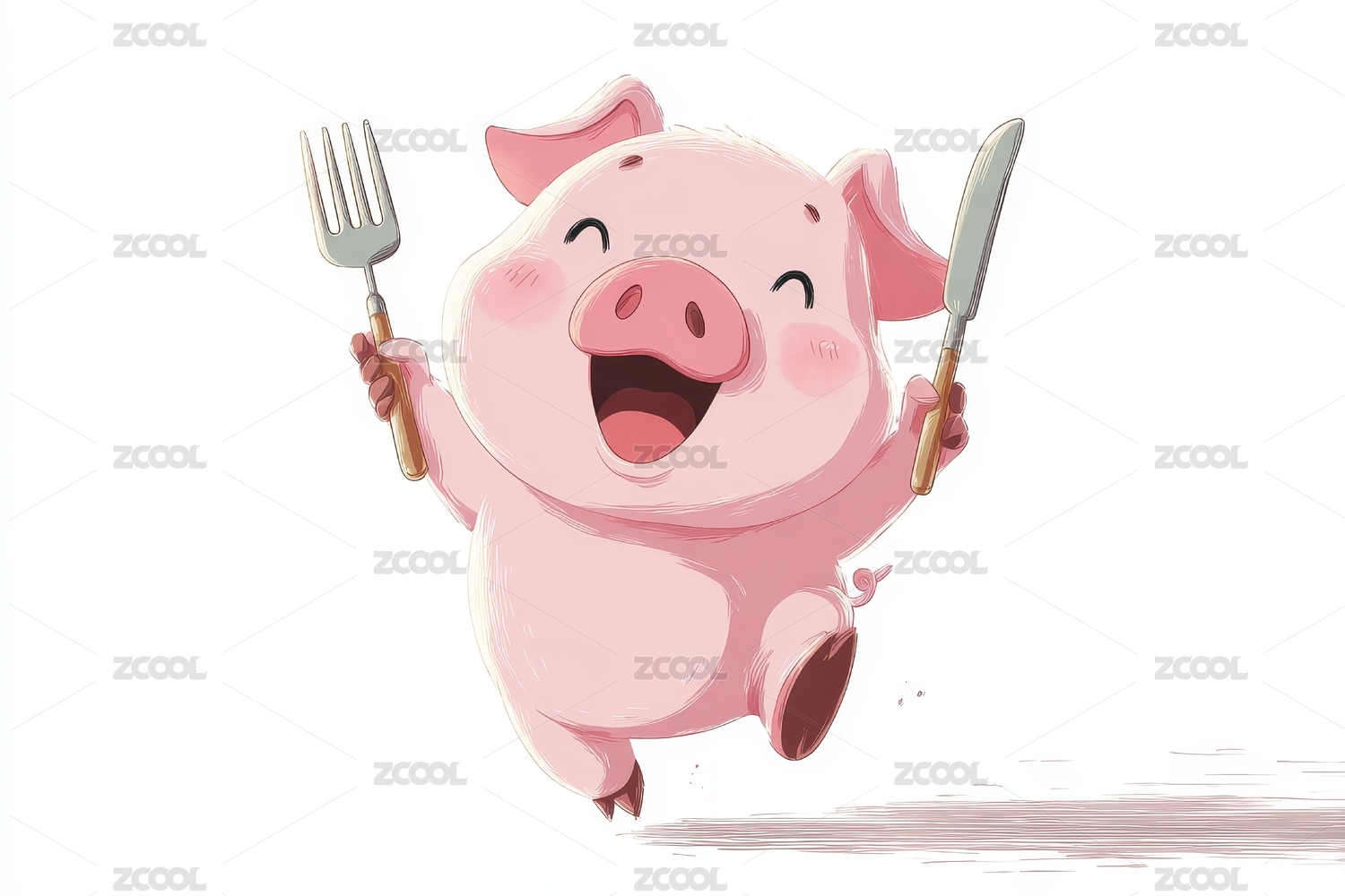 猪拿刀叉开怀大笑
