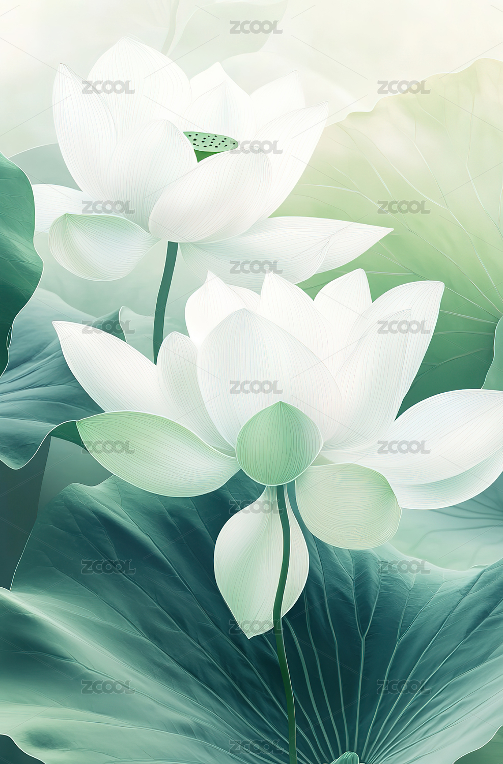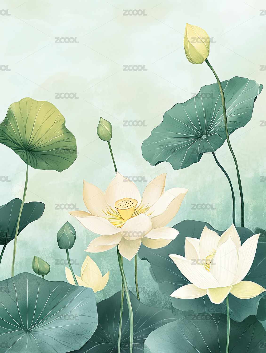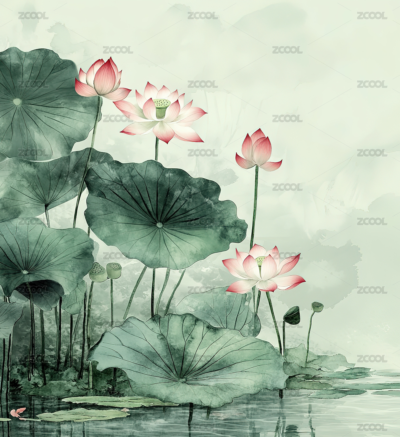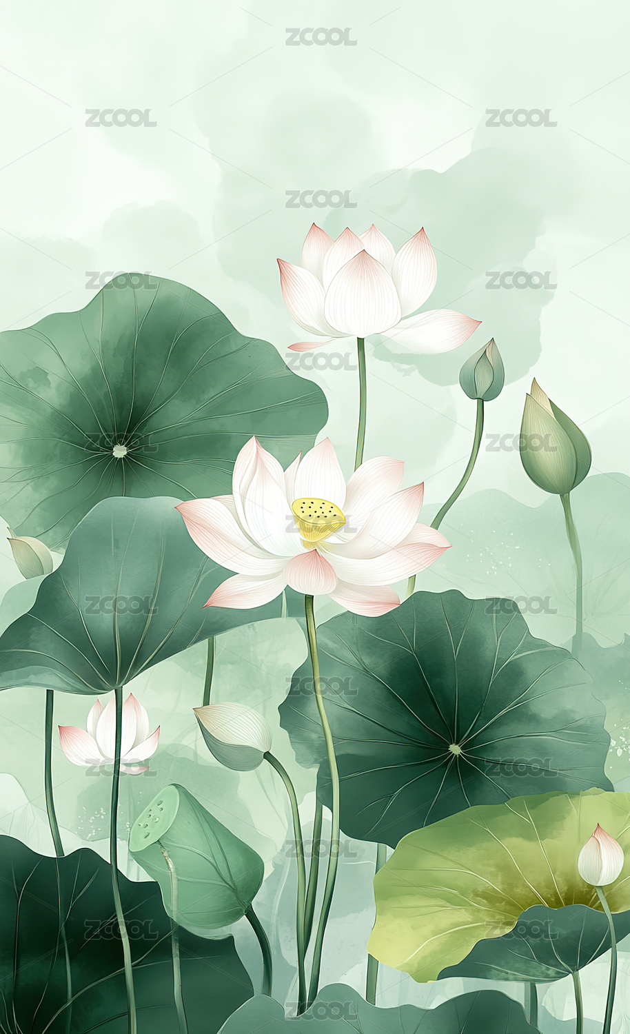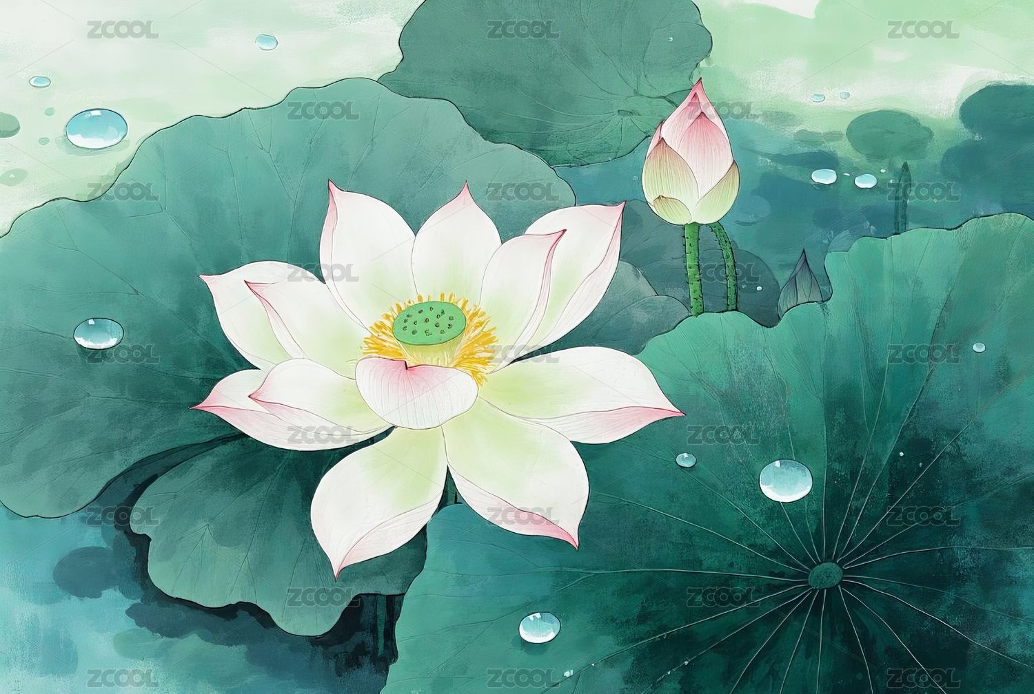 大暑节气夏日荷花夏天池塘荷叶花朵国潮插画