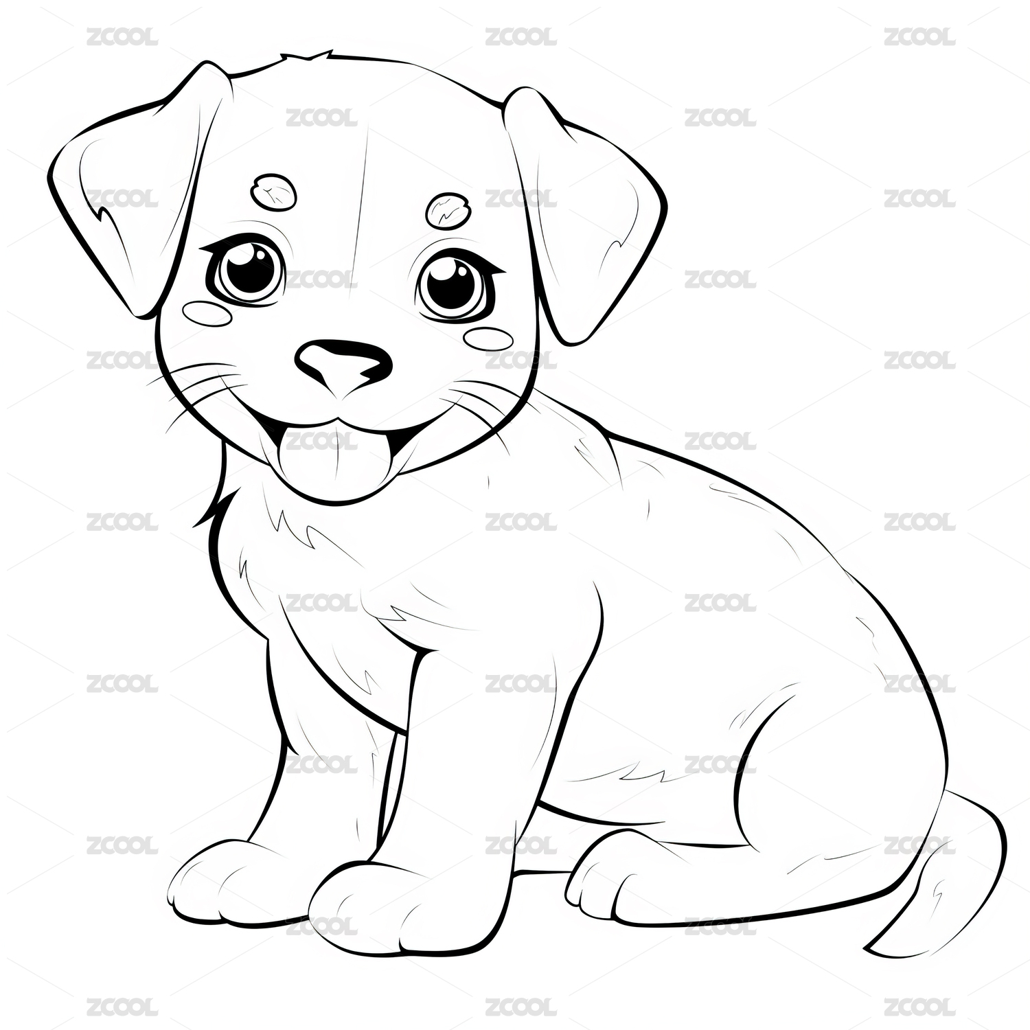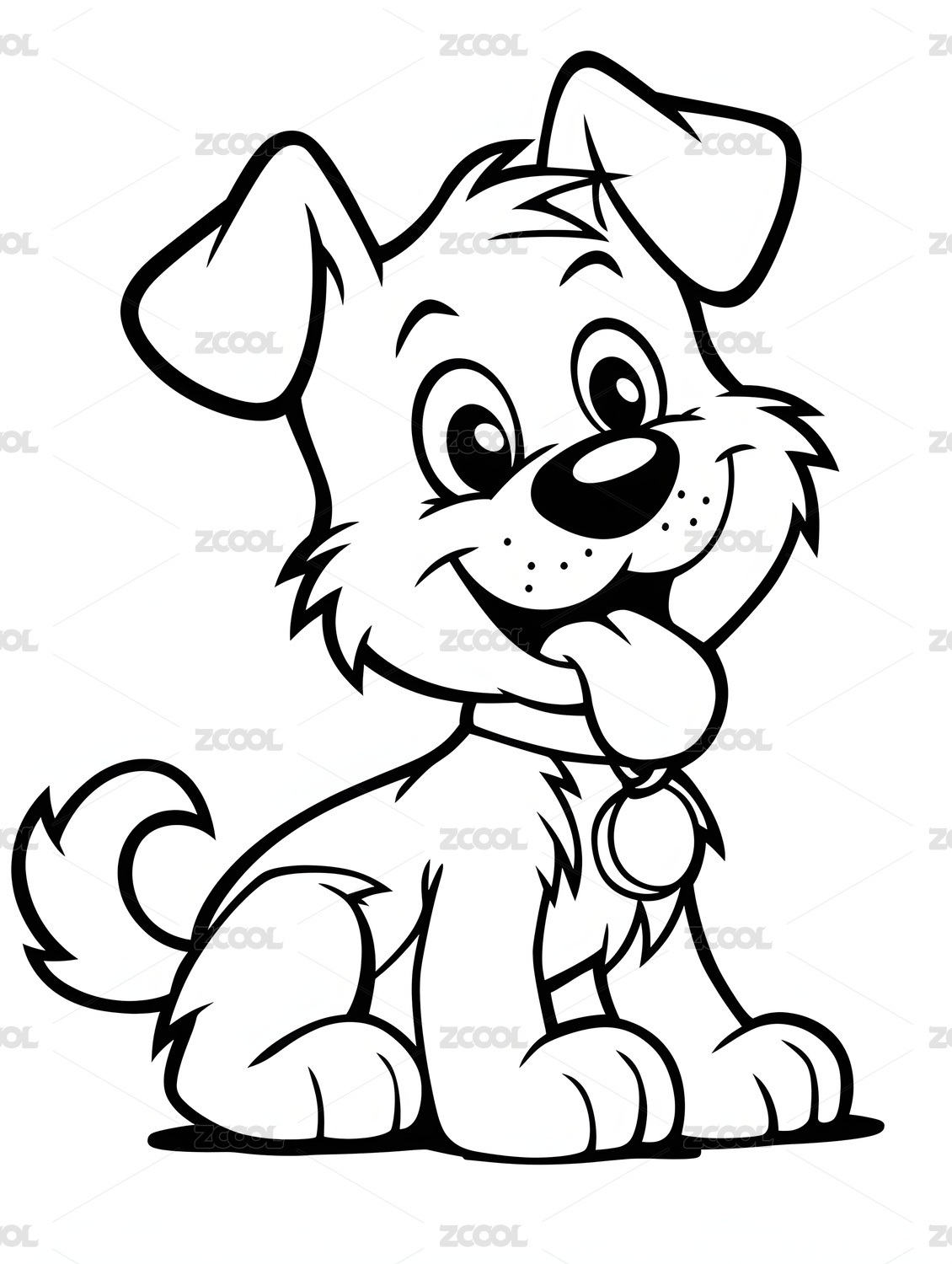 卡通,小狗,狗,可爱,坐着,毛茸茸的,快乐,微笑,活泼,年幼的