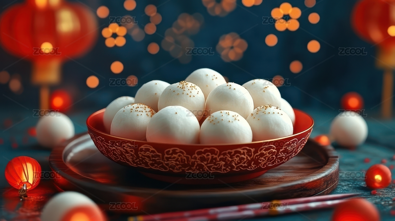 新春元宵佳节素材喜庆背景上一碗汤圆
