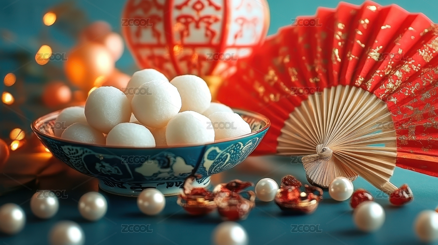新春元宵佳节素材,喜庆背景上一碗汤圆