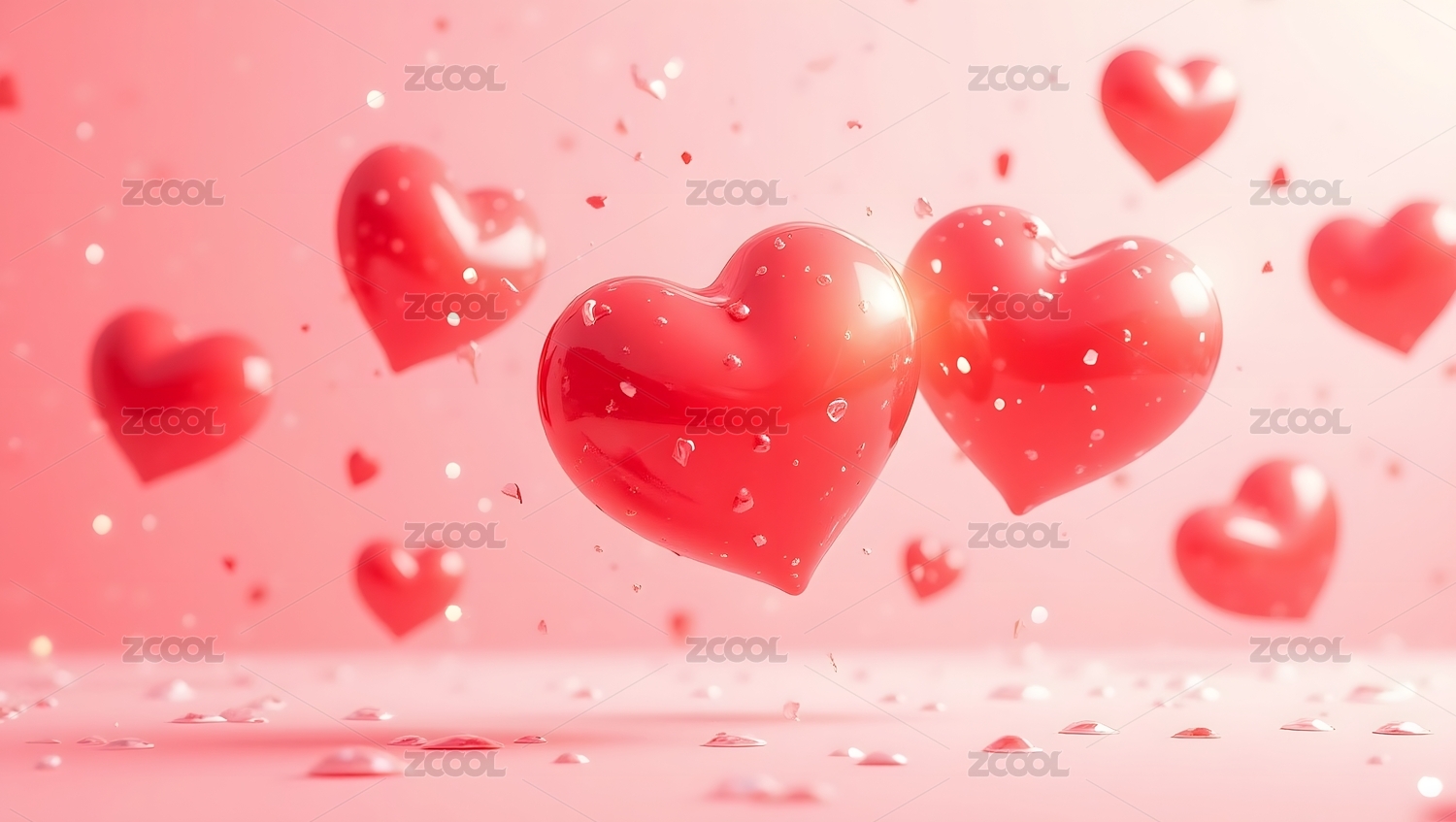 红色,心形,小心形,粉红色,渐变背景,草莓,小颗粒,果冻,花瓣,立体图案