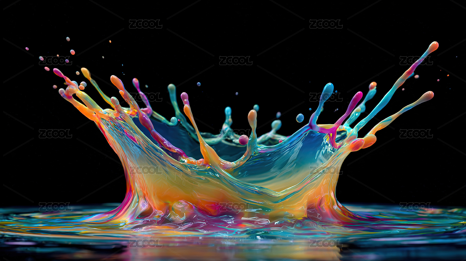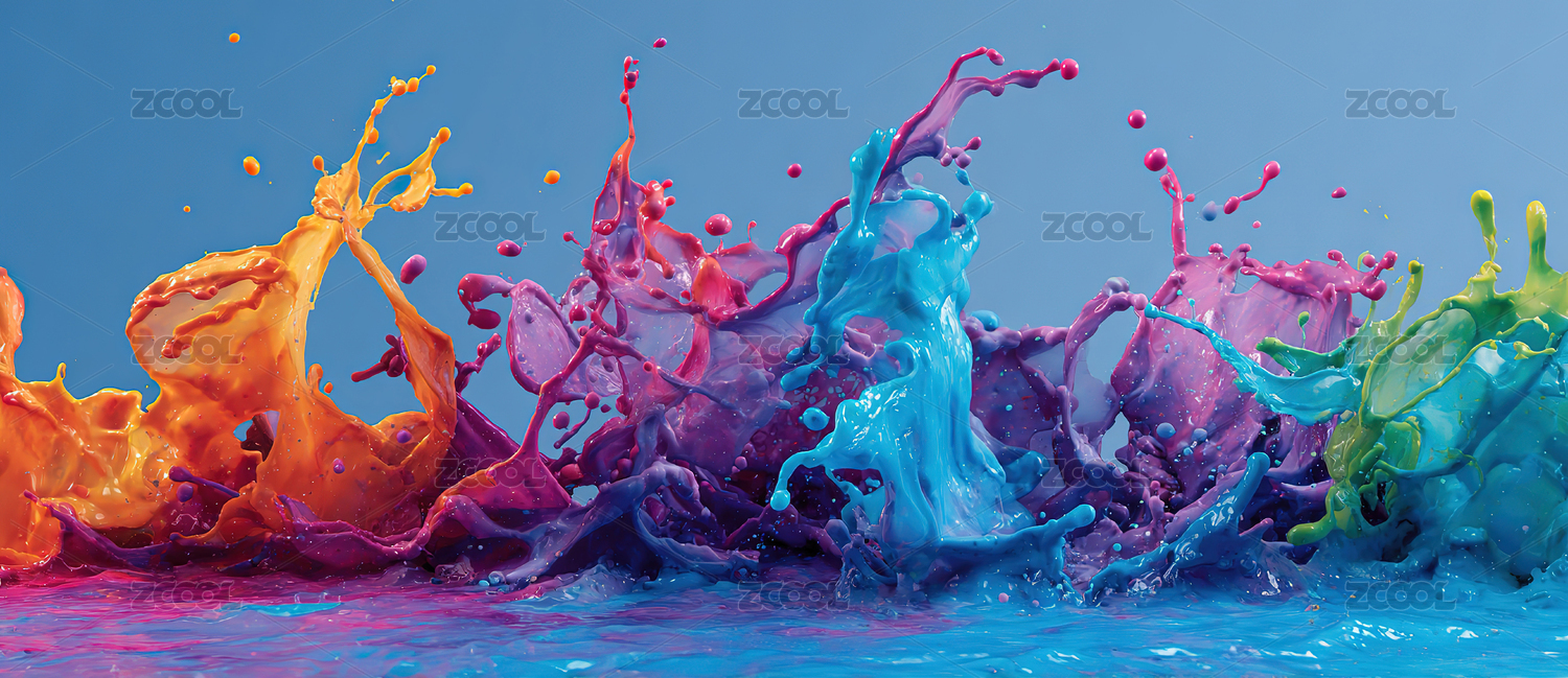 白色背景下彩色颜料在水中飞溅的特写镜头