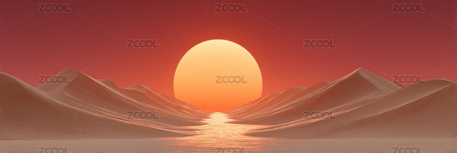 沙漠中夕阳西下景象