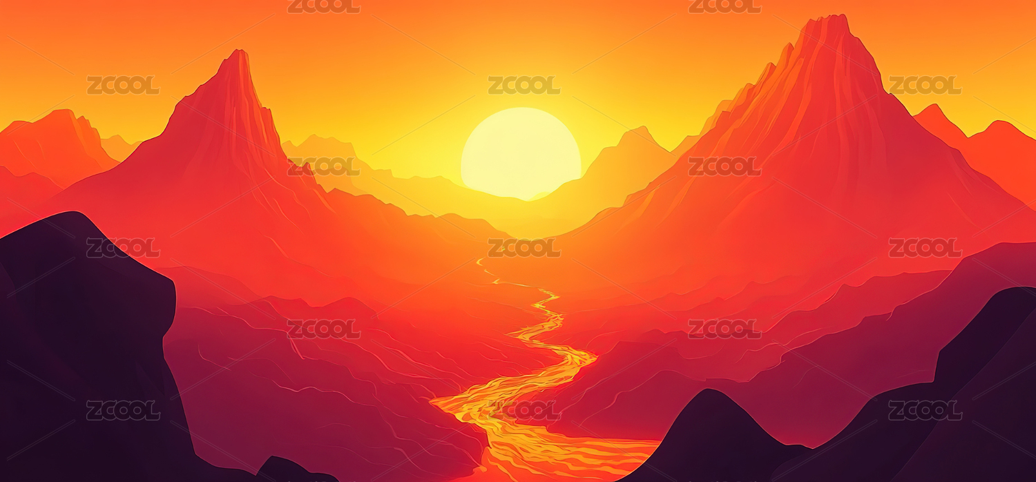 日出清晨风景插画