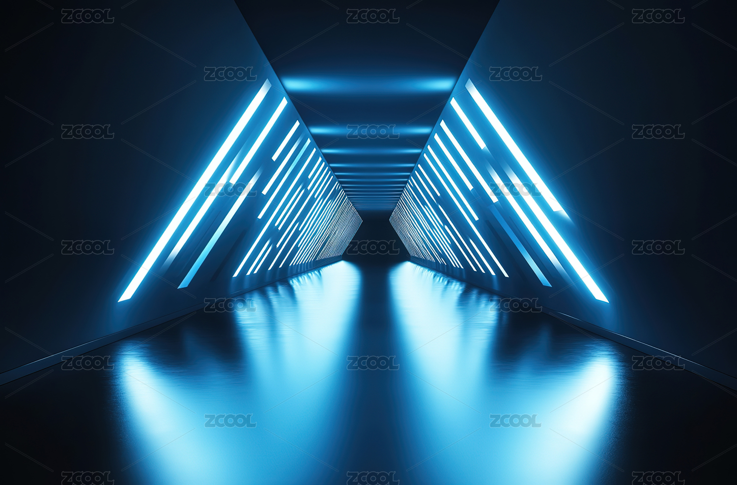 蓝色科技走廊光影交错