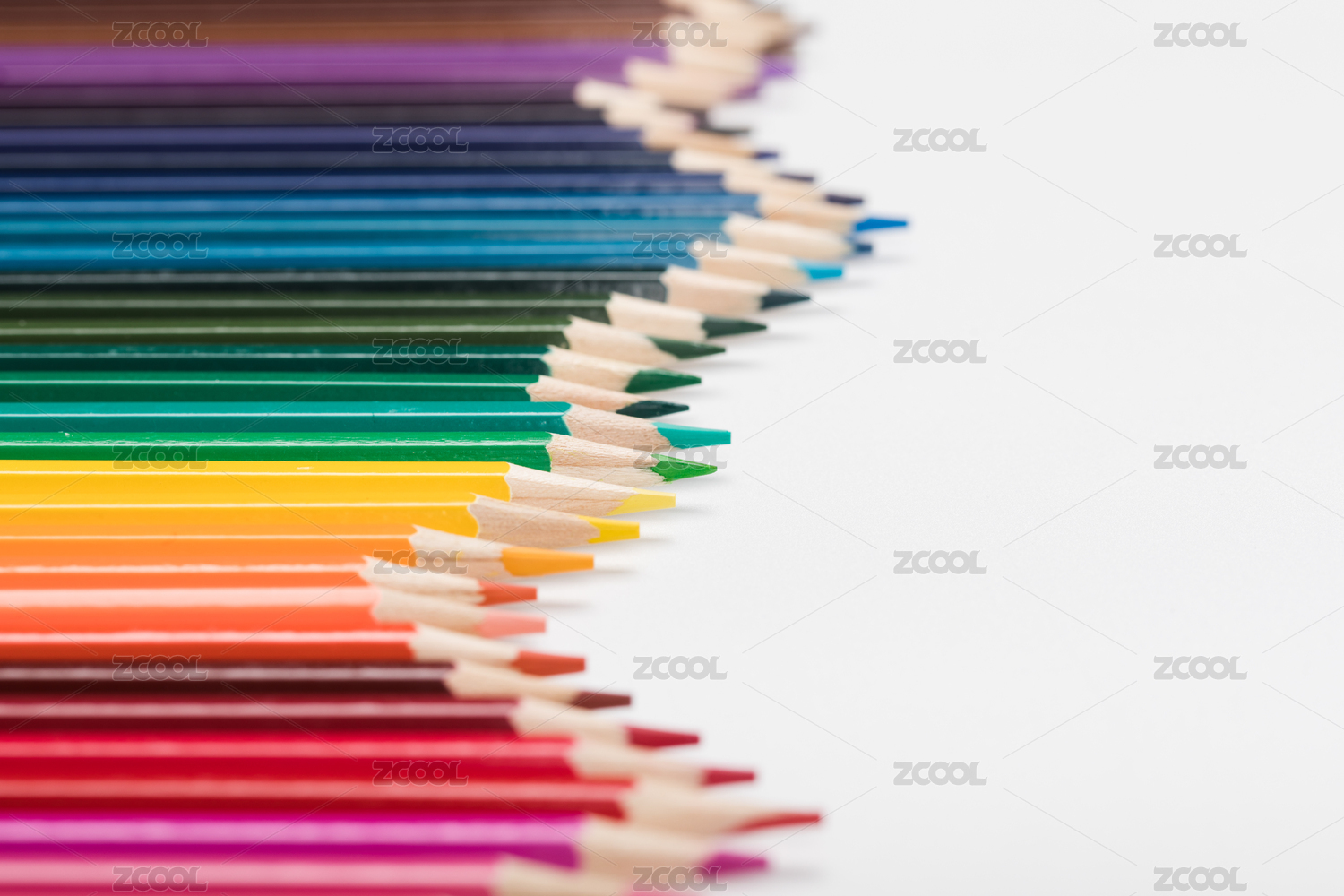 圆弧状排列的彩铅笔尖特写图