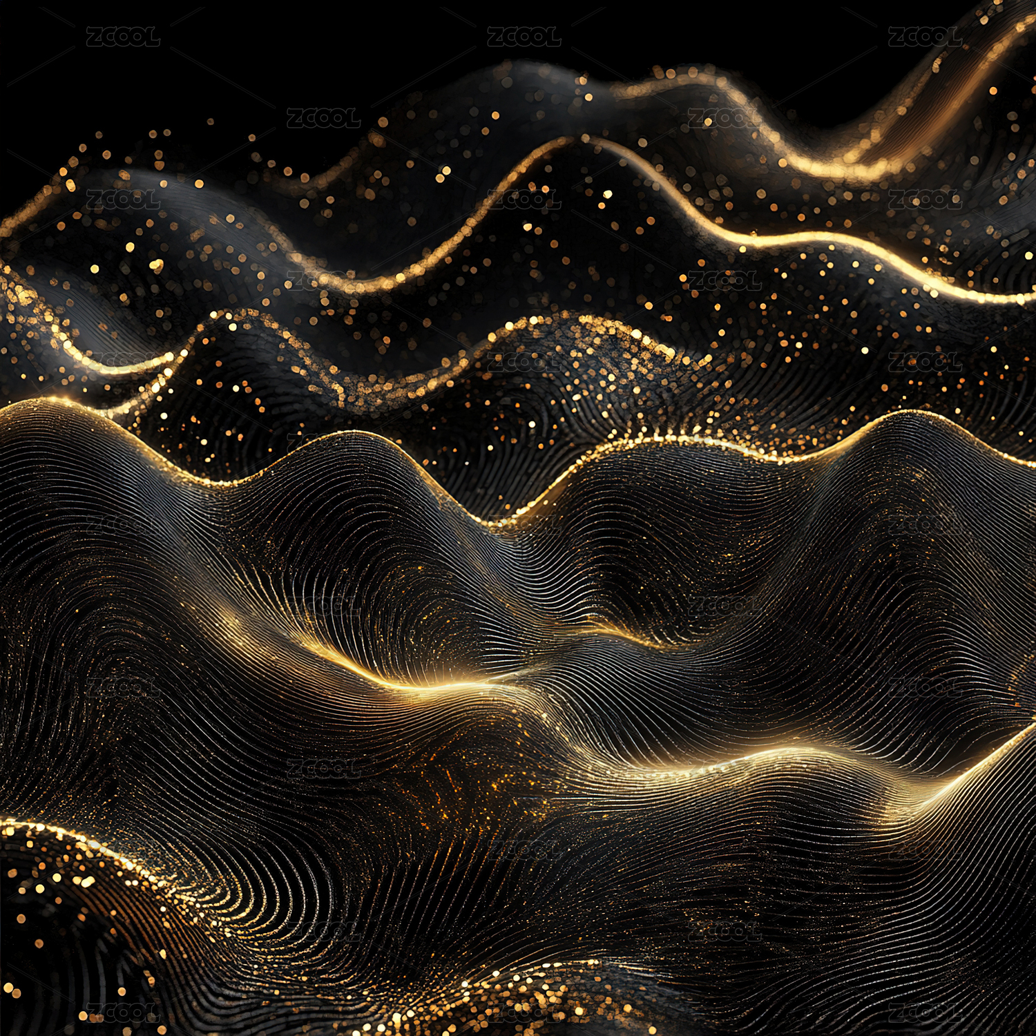 未来派3d波浪抽象背景, 数字绿色粒子概