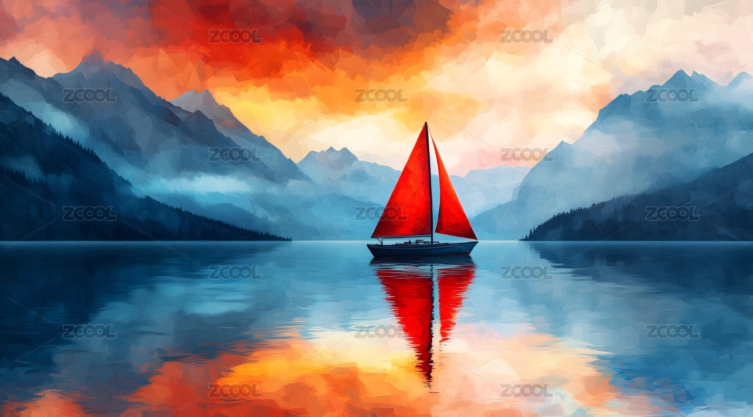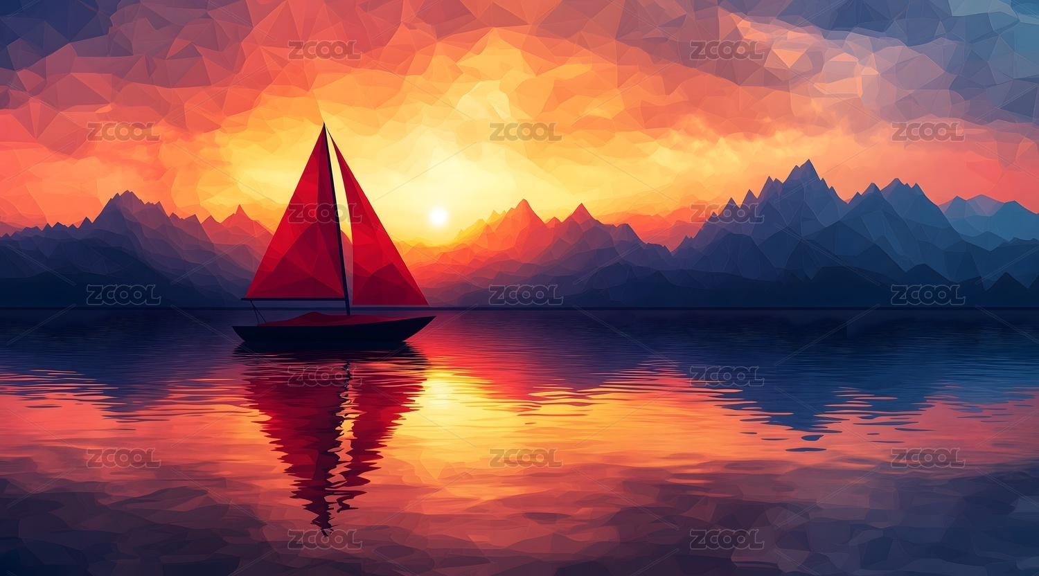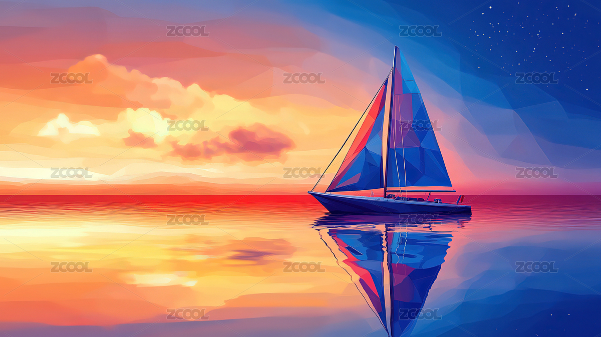 无人,天空,水,日落,反射,风景,宁静,剪影,有帆船,云