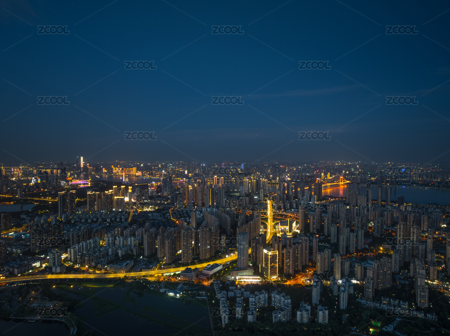 武汉夏日城市天际线夜景风光
