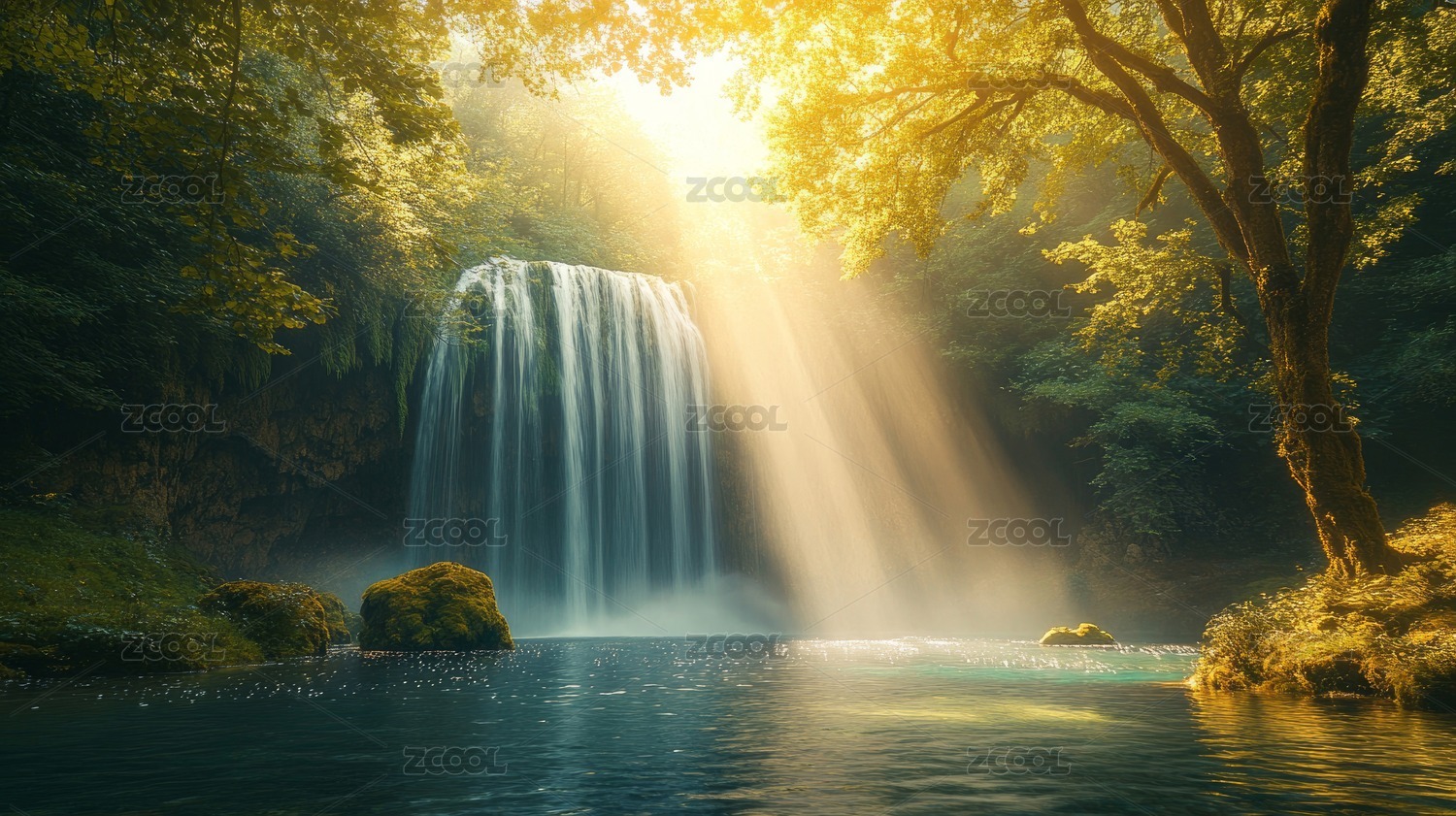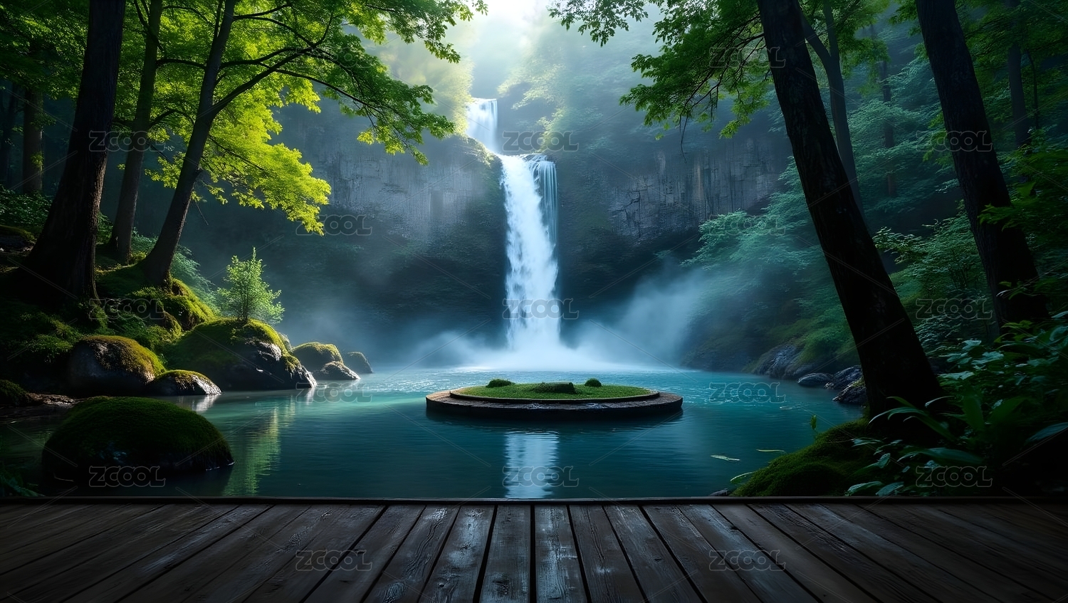 展示,平台,护肤品,饮品,石台,自然,阳光,瀑布,森林,产品