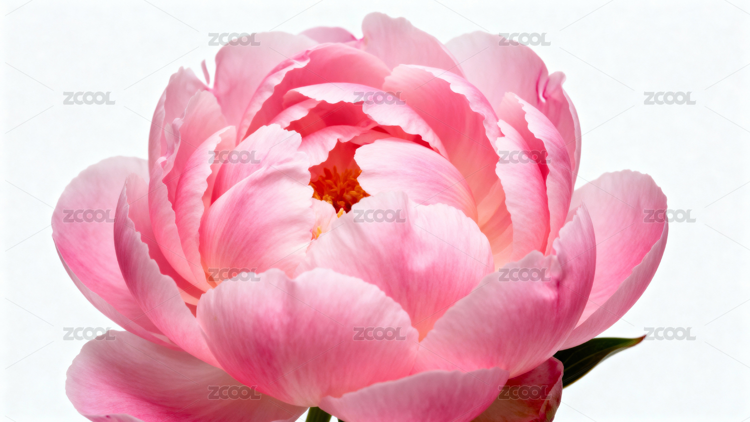 粉色牡丹花绽放于纯白背景之上