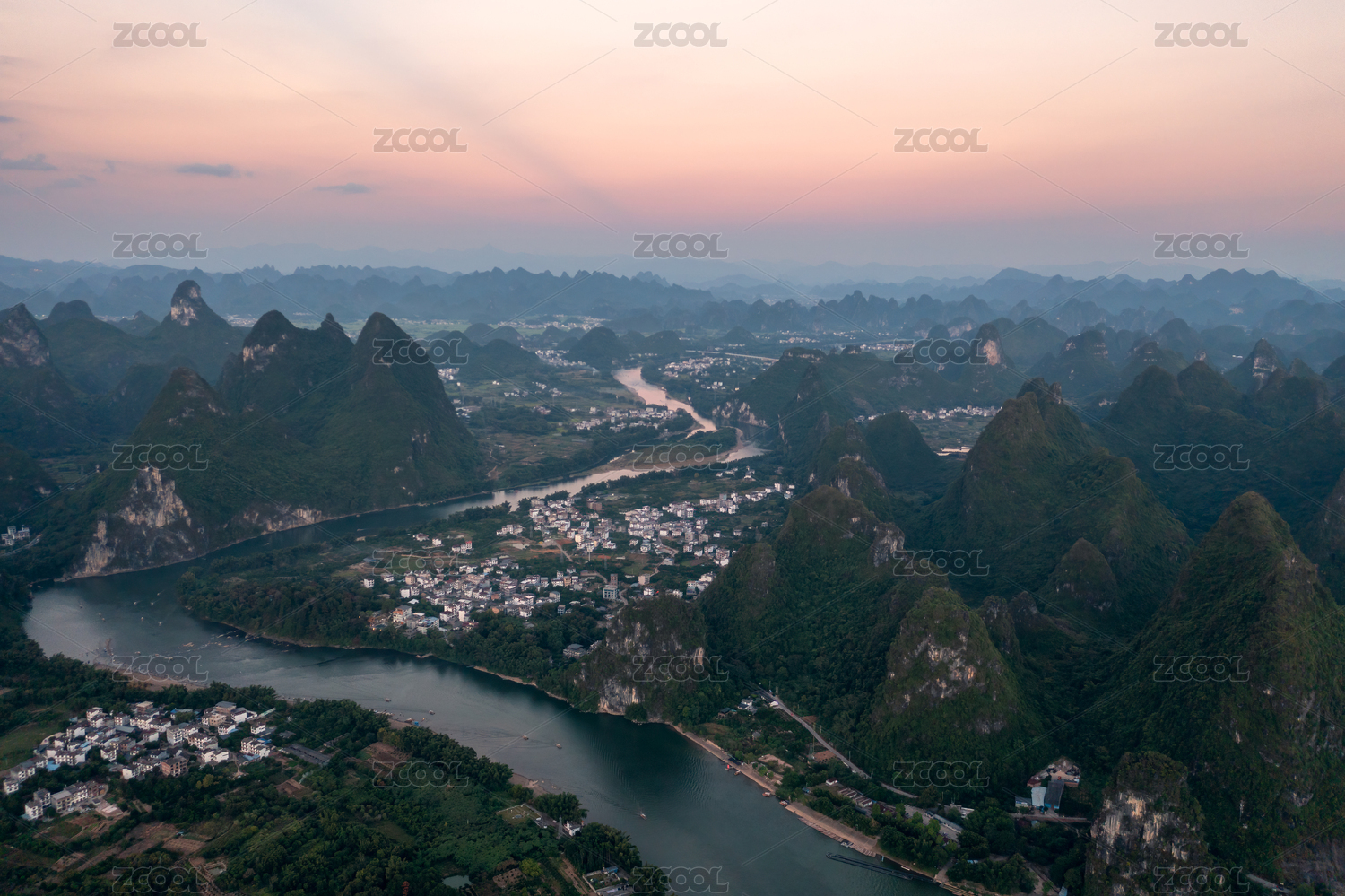 桂林阳朔漓江日出山水风景
