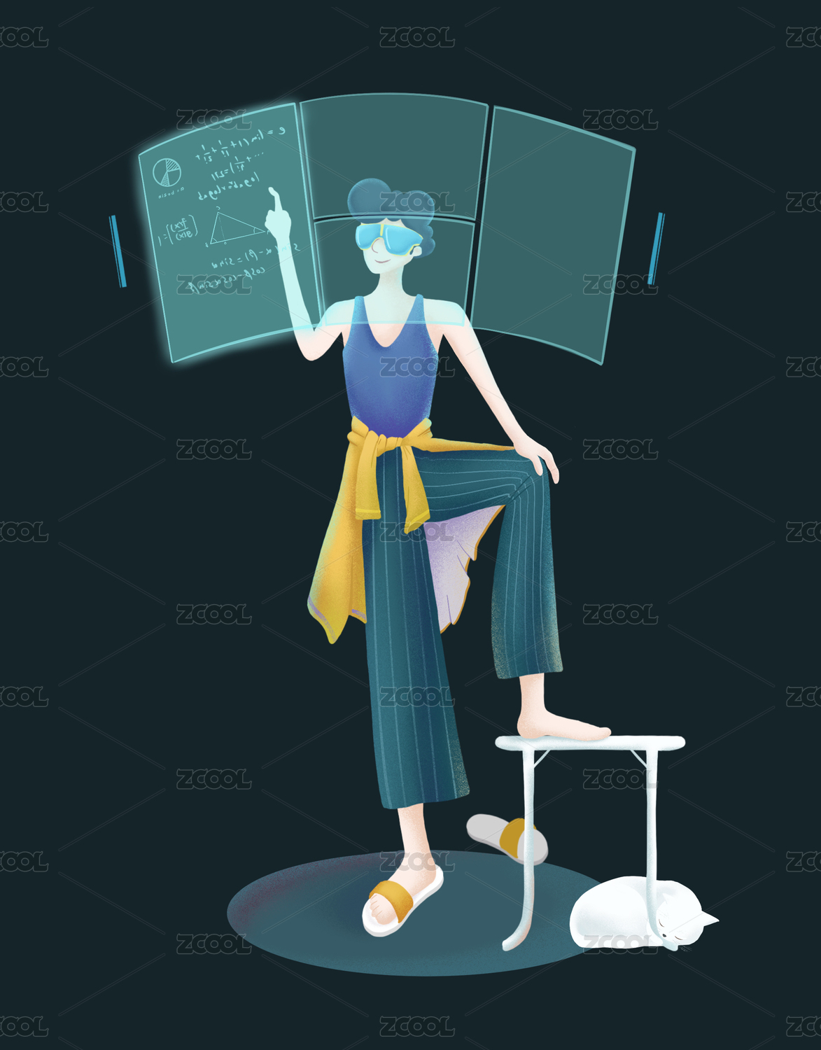 女孩,女性,工作,电话,专业,招聘,交流,合作,治愈,卡通