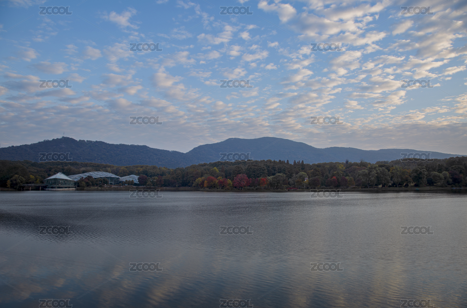庐山,如琴湖,湖水,湖面,亭台楼阁,山林,植被,天空,云彩,蓝天