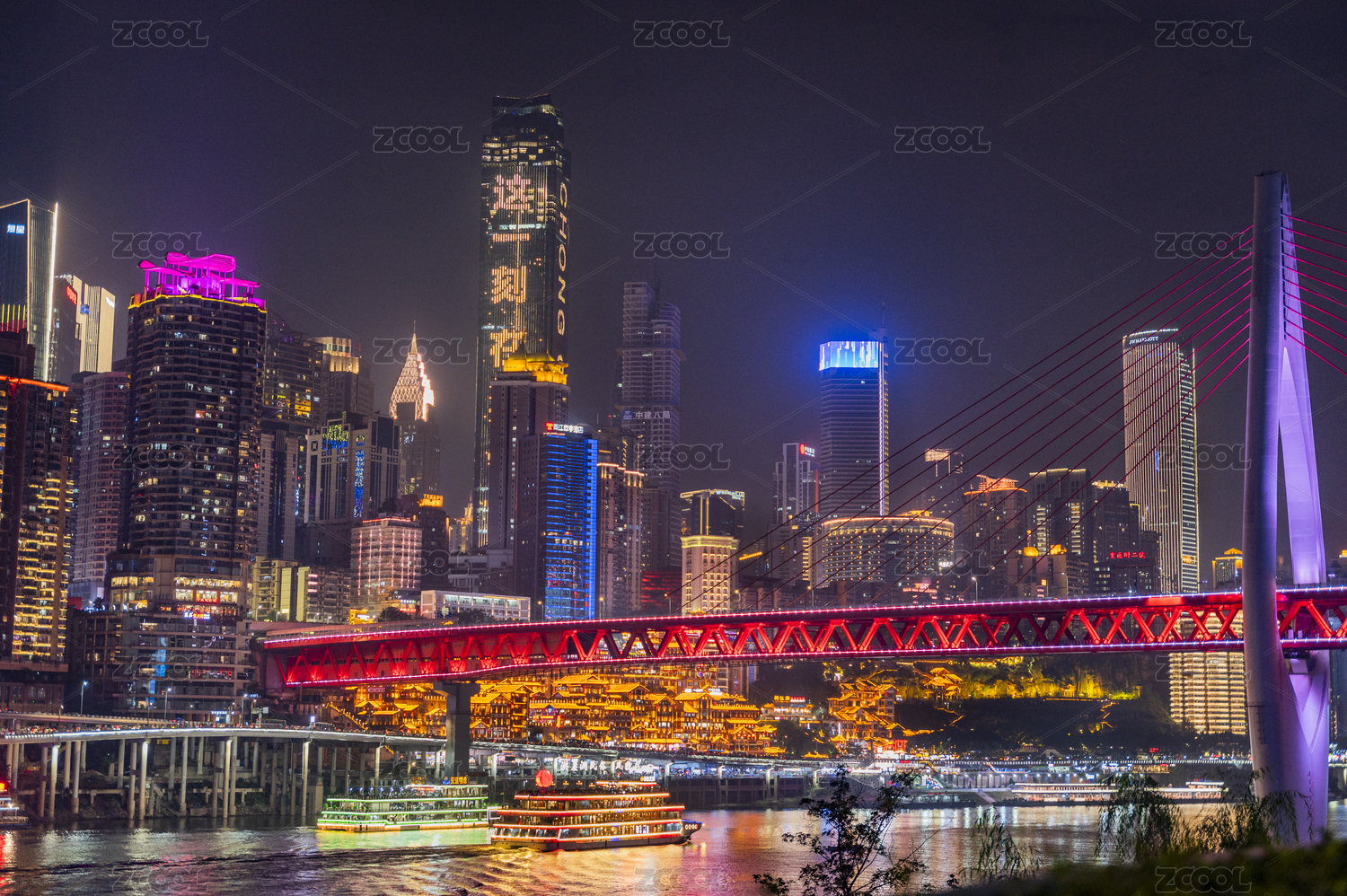 重庆洪崖洞景点和千厮门嘉陵江大桥夜景