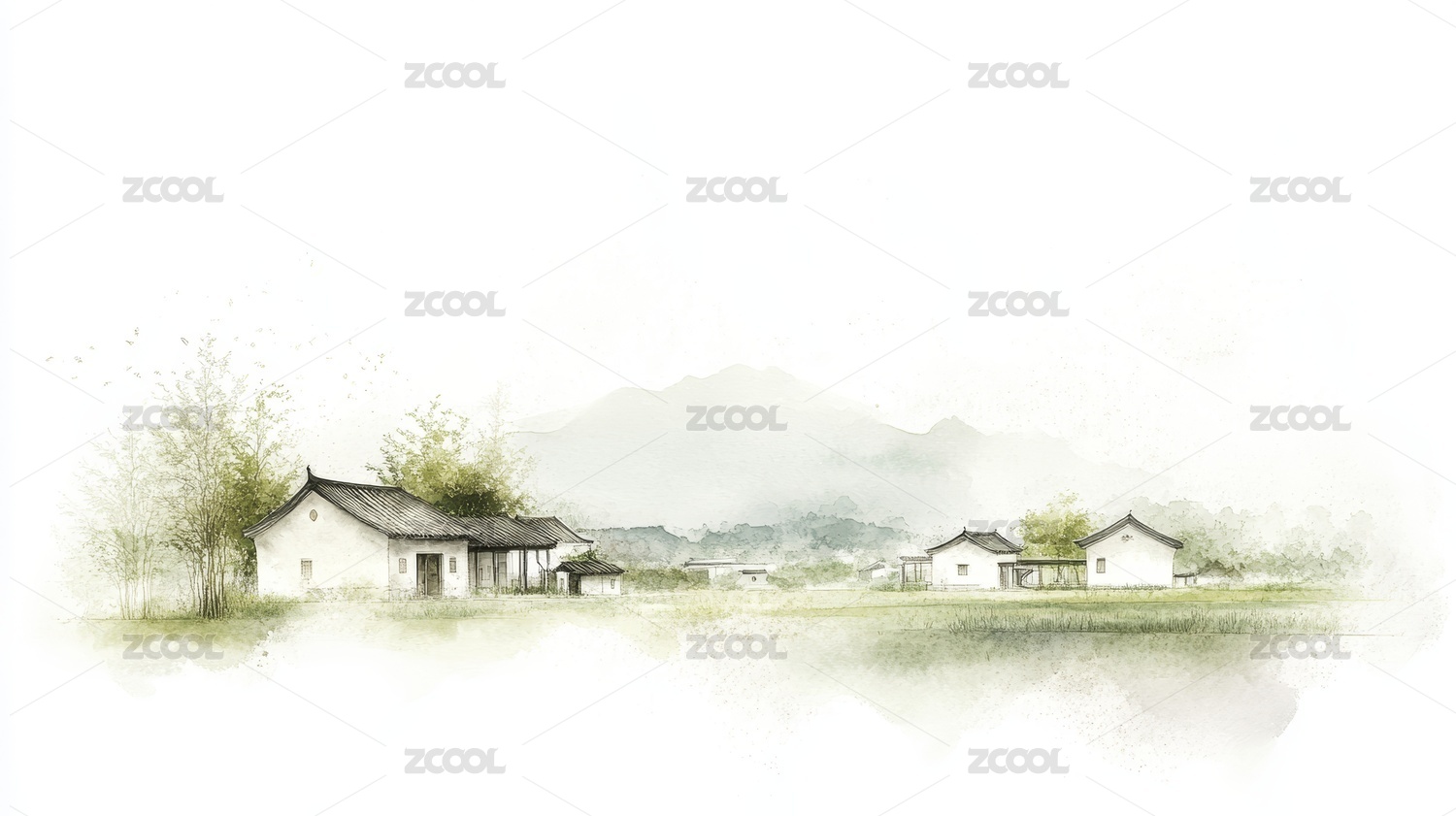 水墨画乡村小镇