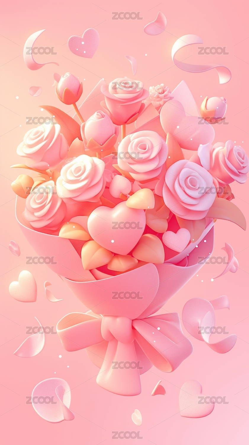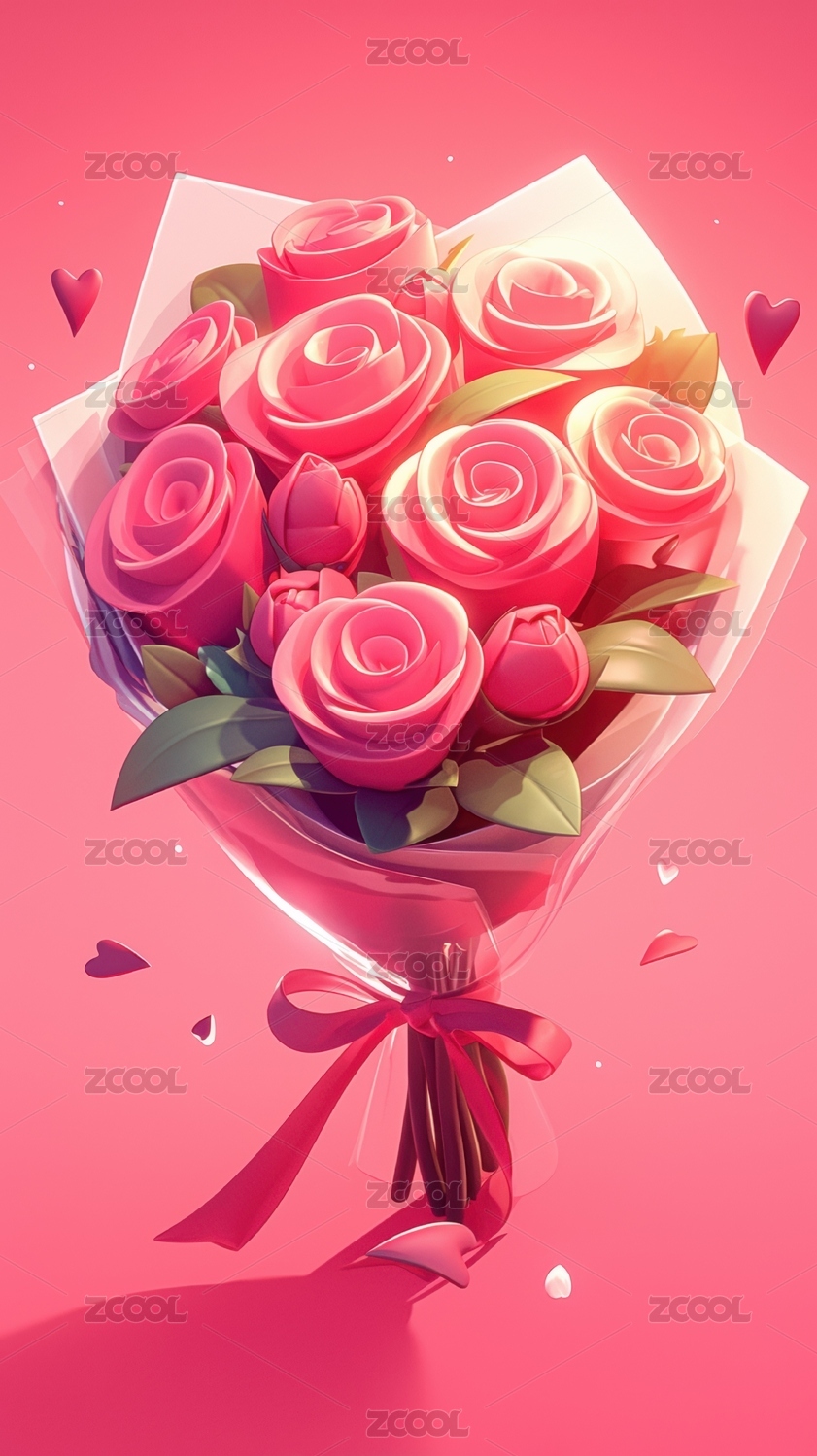 卡通,浪漫,送花,情感,爱心,玫瑰,表白,情人节,214,520