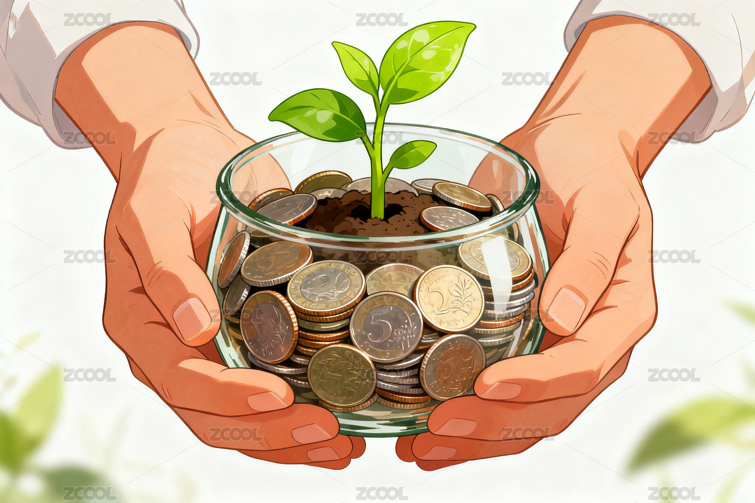 手捧金钱树幼苗——经济增长、货币增长、投资理财、利润、财务管理概念创意矢量图