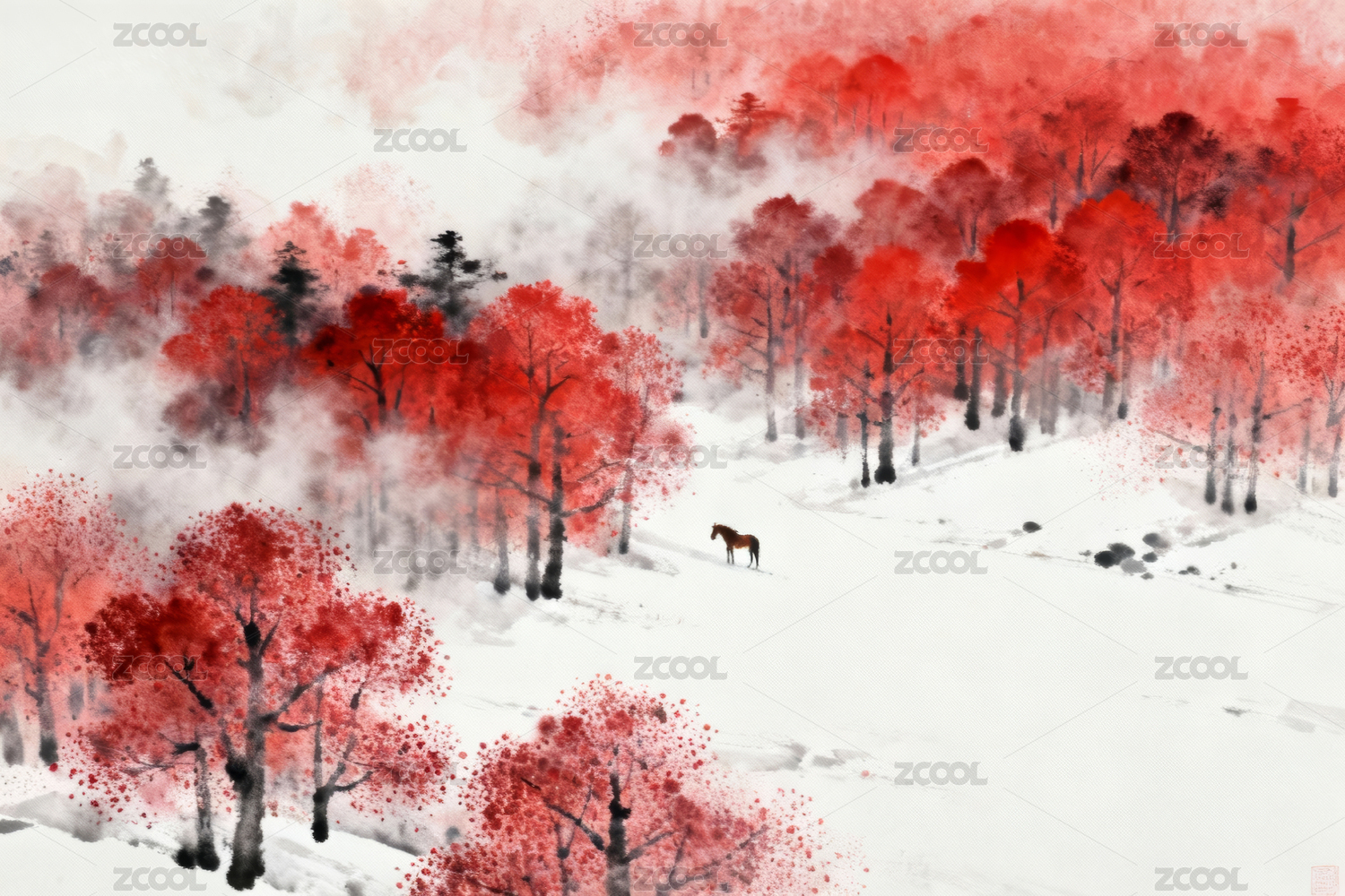 红色,雾,梦幻,森林,植物,树,自然,自然风光,朦胧,唯美