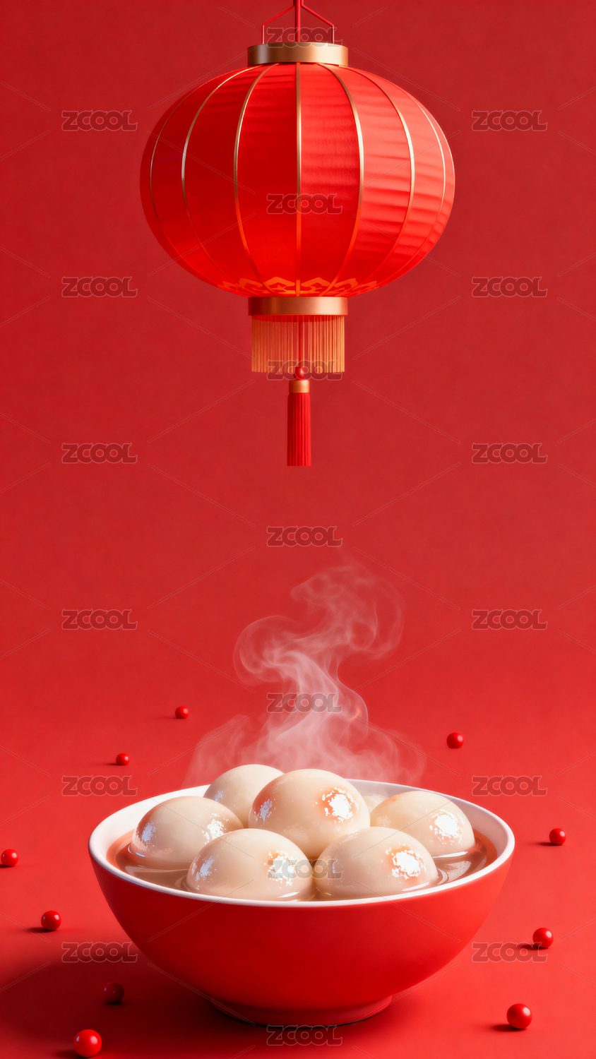 汤圆,红色,碗,灯笼,中国风,节日,传统,元宵节,勺子,云朵
