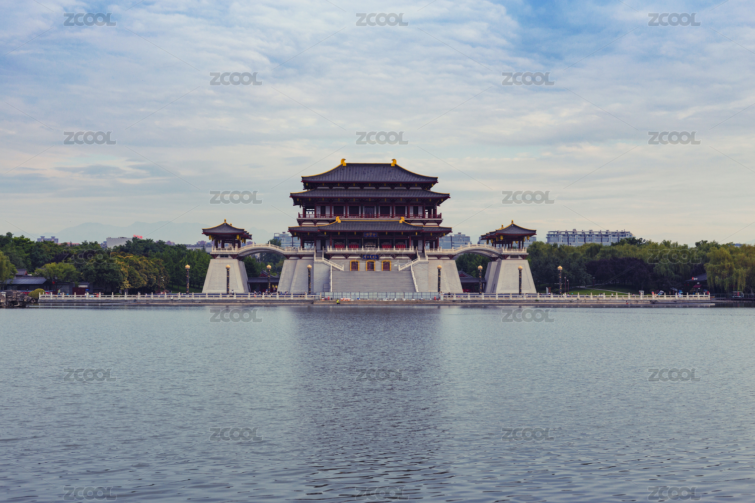大唐芙蓉园,无人,田园风光,都市风光,白昼,黄色,蓝色,古老的,著名景点,房地产
