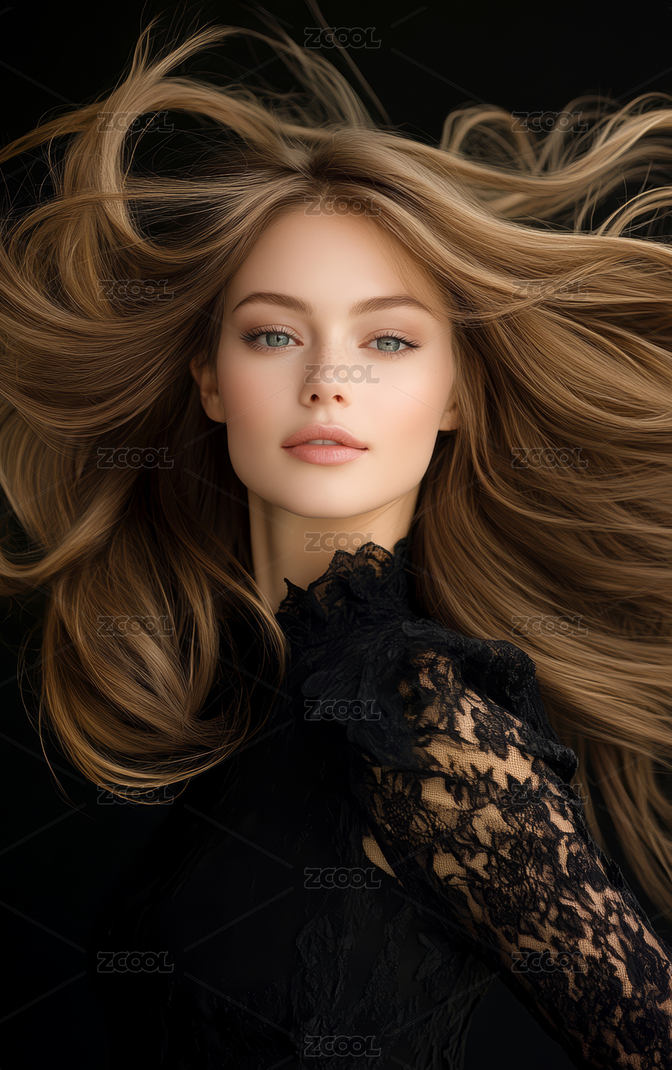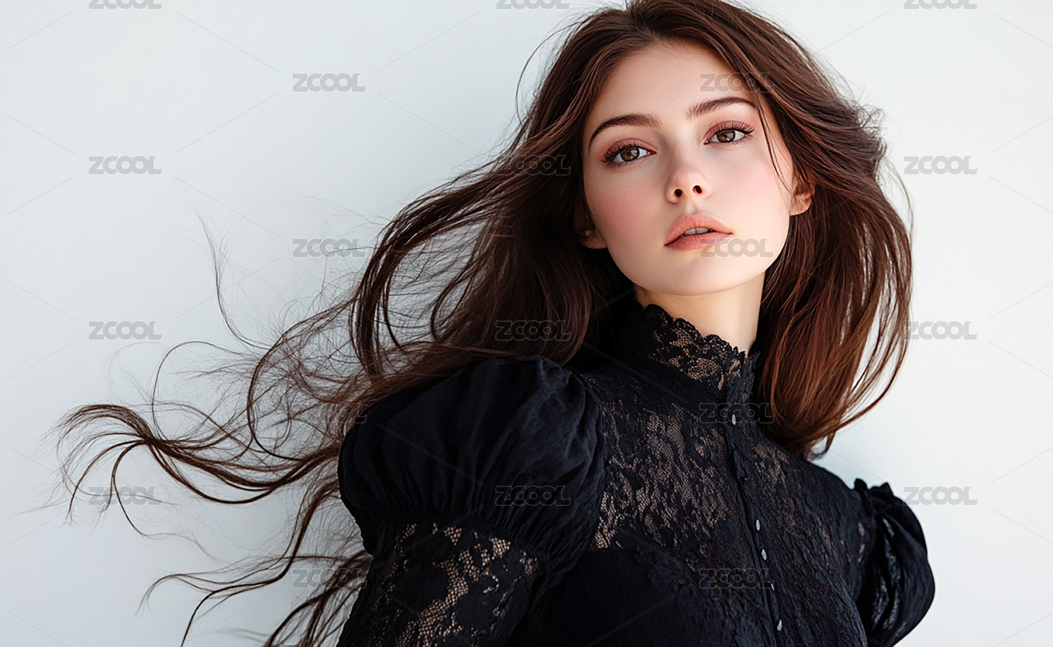 女人,美丽,棕色,头发,长发,黑色,连衣裙,优雅,精致,永恒