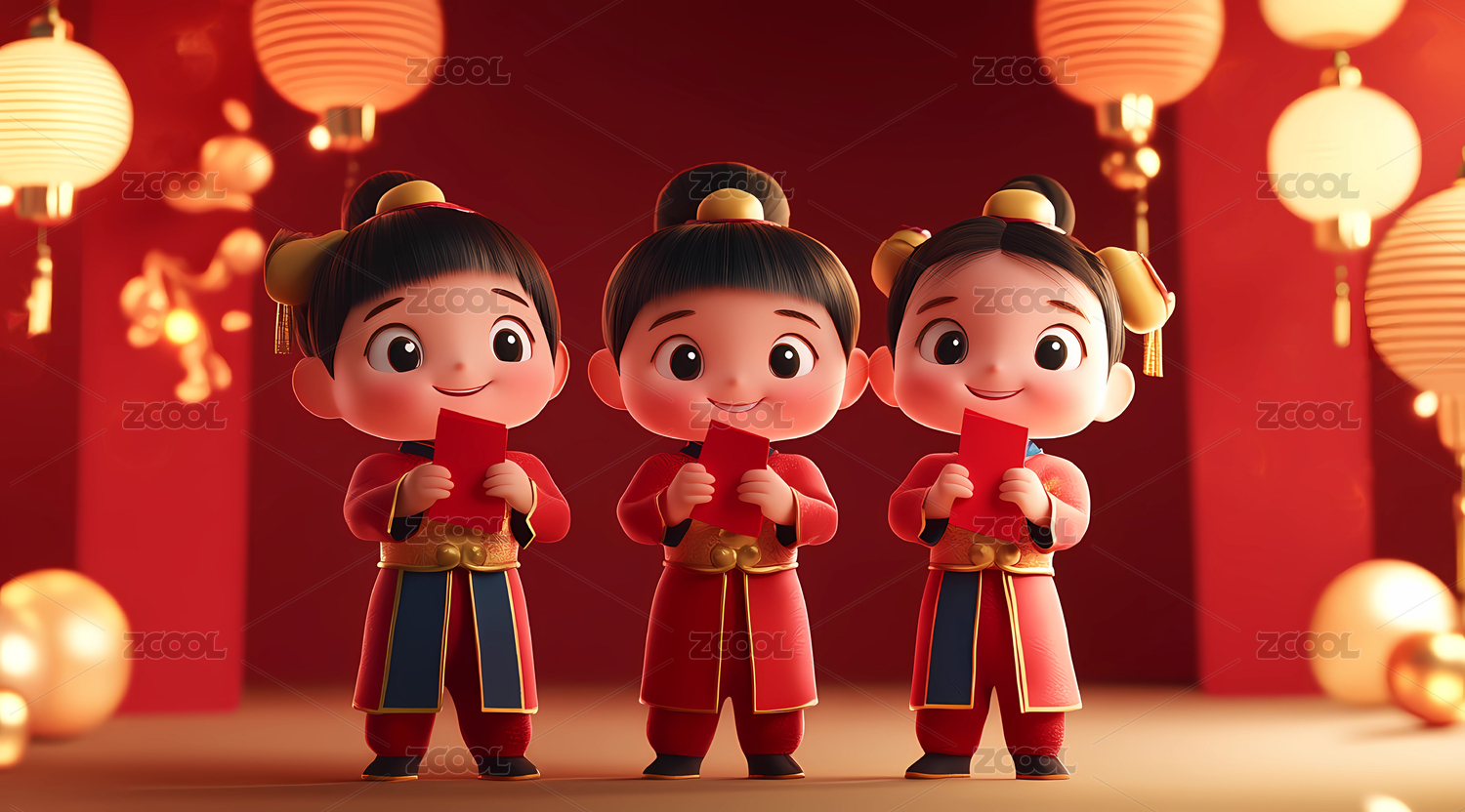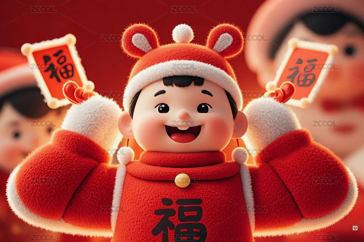 3D,卡通,可爱,娃娃,儿童,孩子,新年,春节,欢庆,喜庆