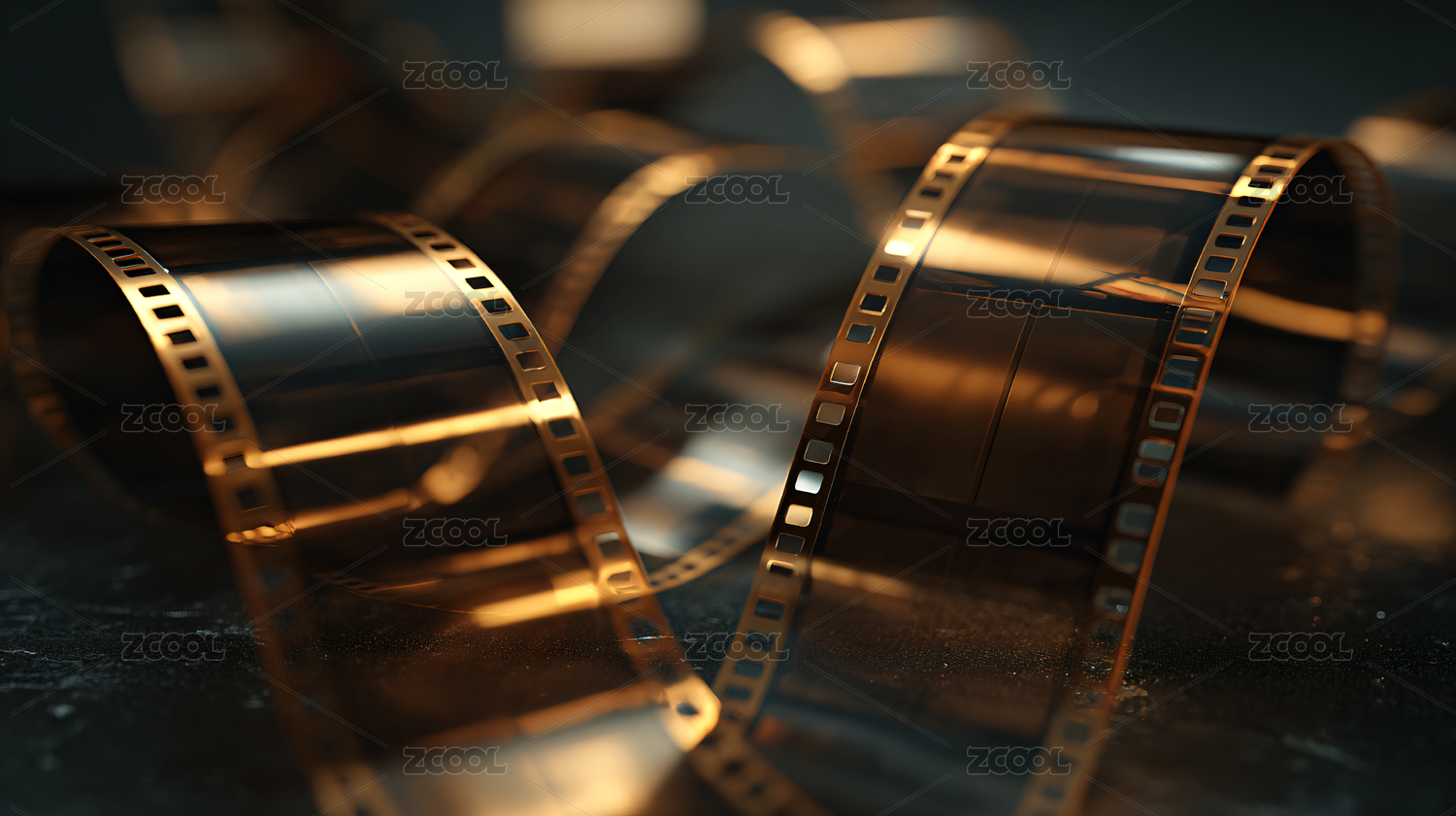 金色背景上的电影胶片,曲线形状创意设计