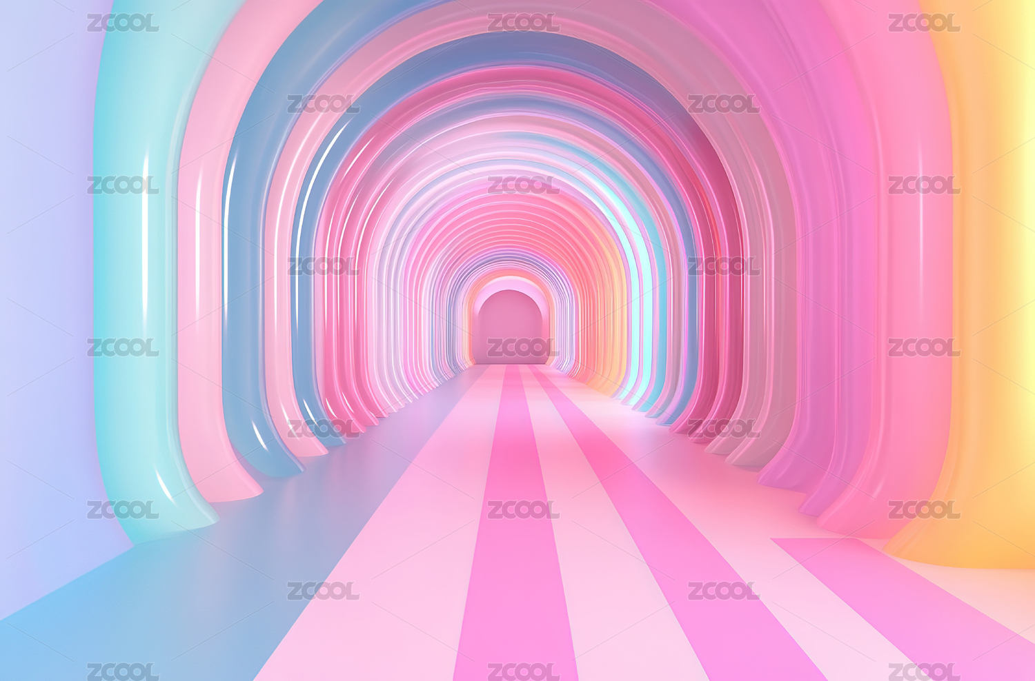 红白相间抽象几何隧道