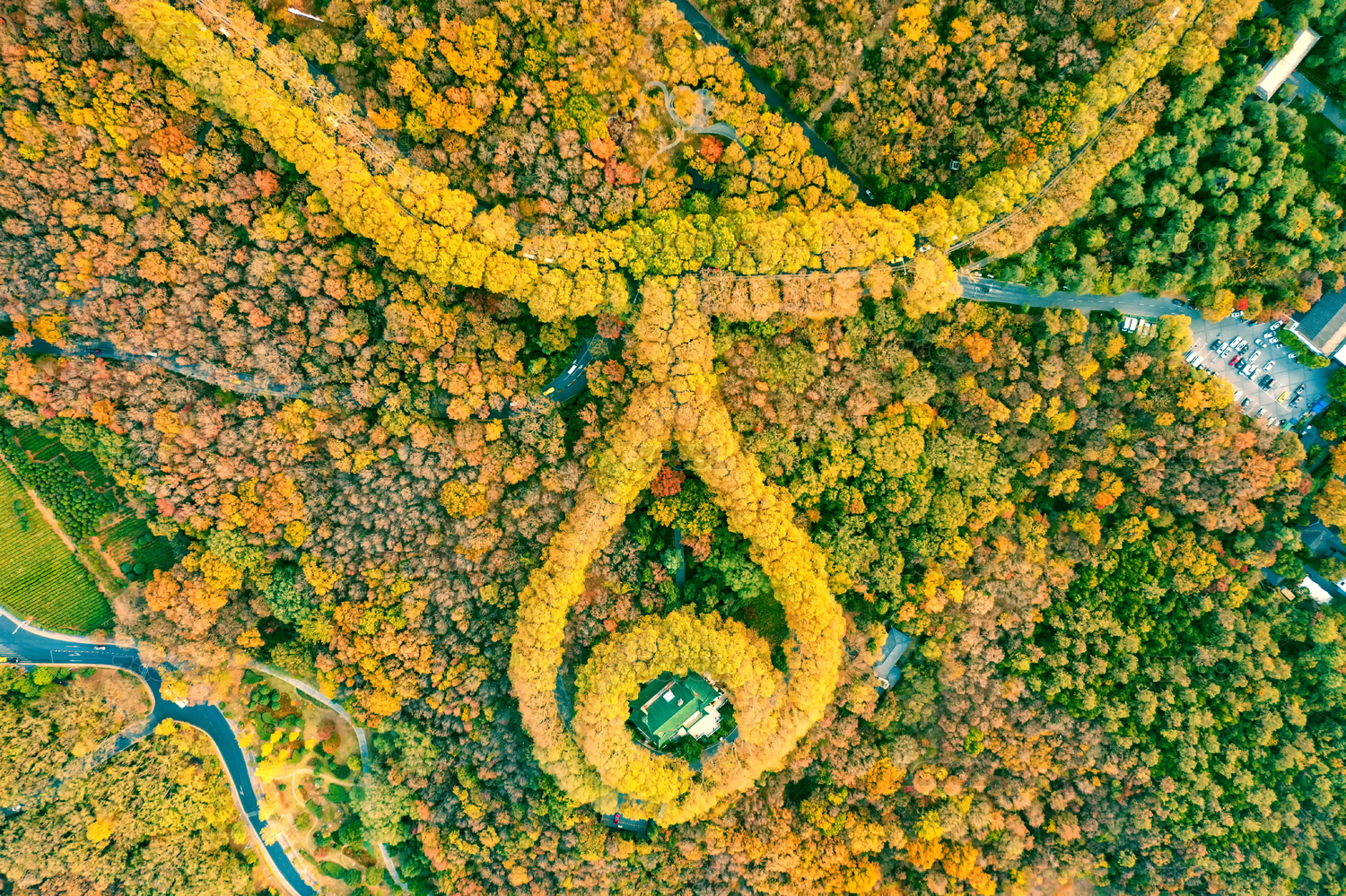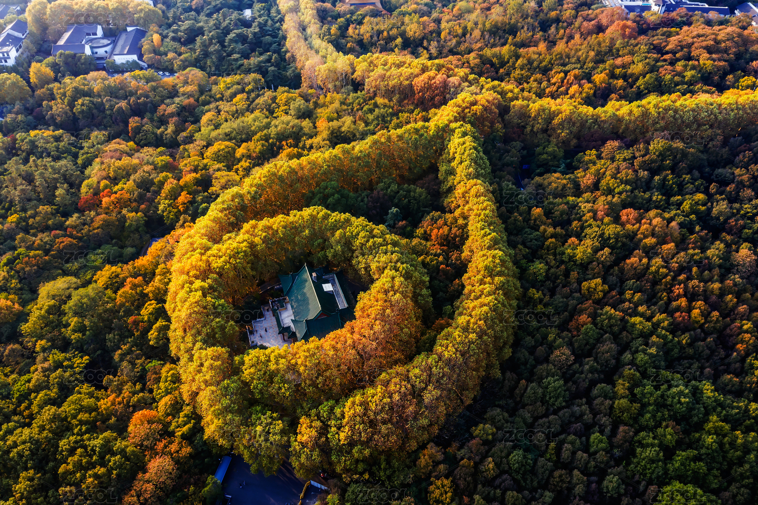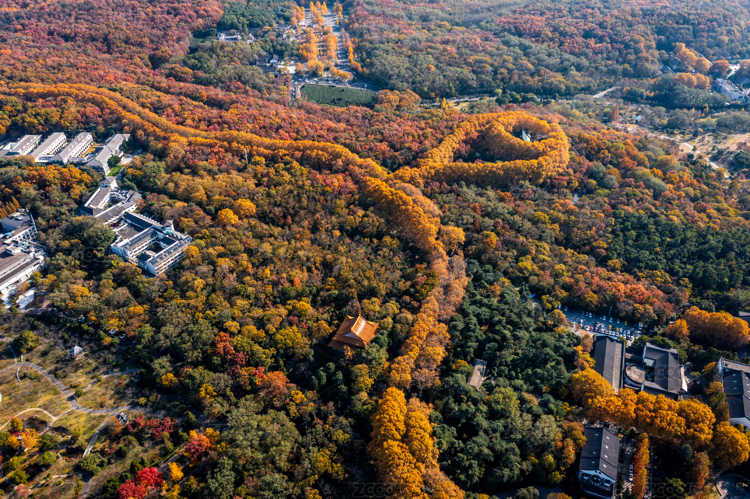 江苏,南京,紫金山,钟山,秋天,航拍,色彩,美龄宫,音乐台,灵谷寺